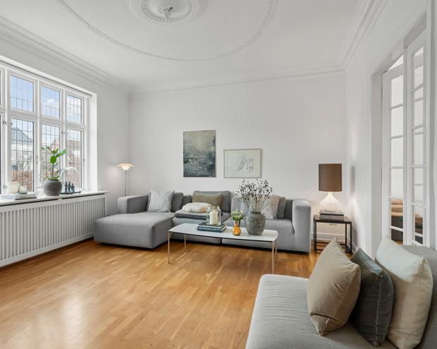 Lejligheden blev sat i stand efter alle kunstens regler i 2008, da nuværende ejer overtog. Det skete med et ønske om at genskabe boligens originale og herskabelige fremtoning med blandt andet høje lofter, snedkerlavede skabe og stuk i stueloftet. Samtidig blev et par elementer forsynet med mere moderne komfort, så der blev kælet lidt ekstra for de to badeværelser med gulvvarme og Philip Starck-interiør.