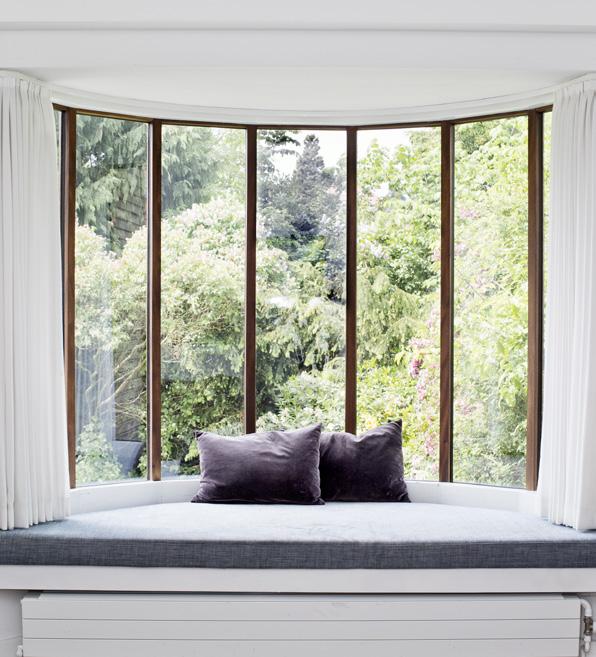 En karnap er meget karakteristisk for en bungalow, og derfor var det vigtigt for ejerne af denne bungalow fra 1930’erne at bevare dette arkitektoniske særpræg og gerne i original stil fra 1930’erne, da de satte villaen i stand med hjælp fra arkitekt Thomas Hjort. De blyindfattede ruder og den indbyggede blomsterkumme skiftede de dog ud, og træet i vinduerne var råddent og kunne desværre ikke reddes. En tømrer konstruerede derfor hele vinduespartiet på ny med den originale type sprosser. I buen, hvor der før var blomsterkumme, har ejerne fået indrettet en lækker siddeplads med udsigt til haven.