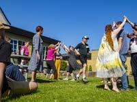 om et sommerferieminde eller om en person, man ser op til. Underviseren kan bestemme, hvad den personlige detalje skal være fra gang til gang. På samme vis slutter jeg af hver gang med en fælles cirkel, hvor vi gennemgår, hvad vi har lavet i dag. Jeg kan spørge ind til, hvad der var sjovt, og hvad der var svært. Bagefter tager vi hinanden i hænderne og får øjenkontakt hele vejen rundt for at sige tak for i dag. Denne genkendelige form er en måde at træde ind og ud af arbejdsrummet og er med til at skabe tryghed for børnene, der i løbet af en undervisningsgang kan komme til at blive udsat for meget nyt og grænseudvidende.