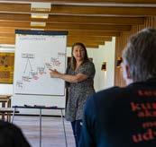 I den sidste workshop var det den erfarne underviser, Fibbe Sarbo, der introducerede øvelser og teknikker til brug i undervisningen af børneteaterhold hjemme hos grupperne. Her fik både nye og gamle undervisere fifs med hjem til værktøjskassen, og i det gode vejr var der tilmed mulighed for at boltre sig i kroens dejlige udeområder.