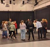 Jeg besøger dem en tirsdag hen mod slutningen af deres prøveperiode. Det er tid til repetitioner, men flere har også fået nye idéer til deres scener og vil godt afprøve, hvad det kan. Efter gennemgang af en række af de fælles sce-