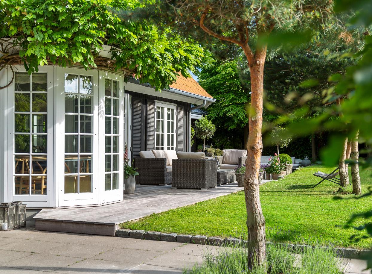 Der er to indgange til boligen, hvilket gør hjemmet oplagt som en generationsbolig eller til familien, der drømmer om en separat teenageafdeling. Her kan I nemlig bo sammen – og alligevel hver for sig, hvis I ønsker det. Den ene del af boligen er udført med sort bindingsværk og hvide tavl, mens den anden del er et træbeklædt murstenshus, som forbindes af en indbydende gang med fine, sprossede glaspartier og døre. Ude som inde er der den mest fantastiske atmosfære og de bedste rammer for hygge og idyl.