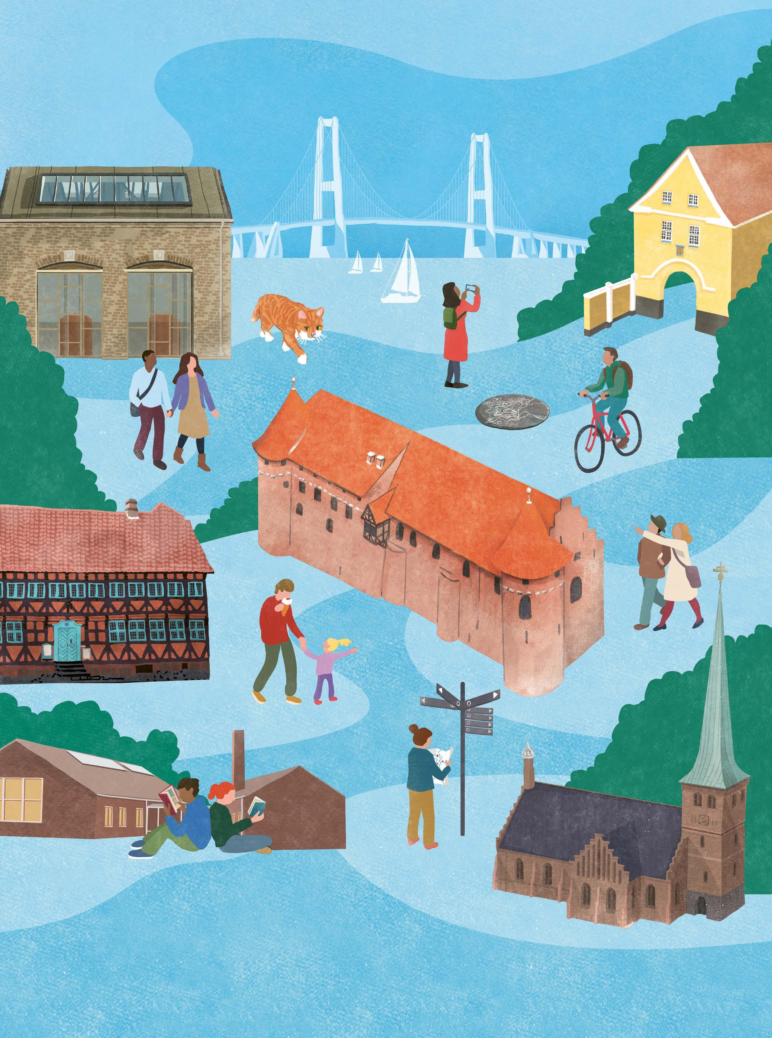 spot for a break, perhaps with a picnic overlooking this impressive engineering feat. After enjoying the view, return to Nyborg. Follow Strandvejen, which will take you back to town, while you continue to have the beauty of the coast on one side and the flourishing landscape of Funen on the other.
