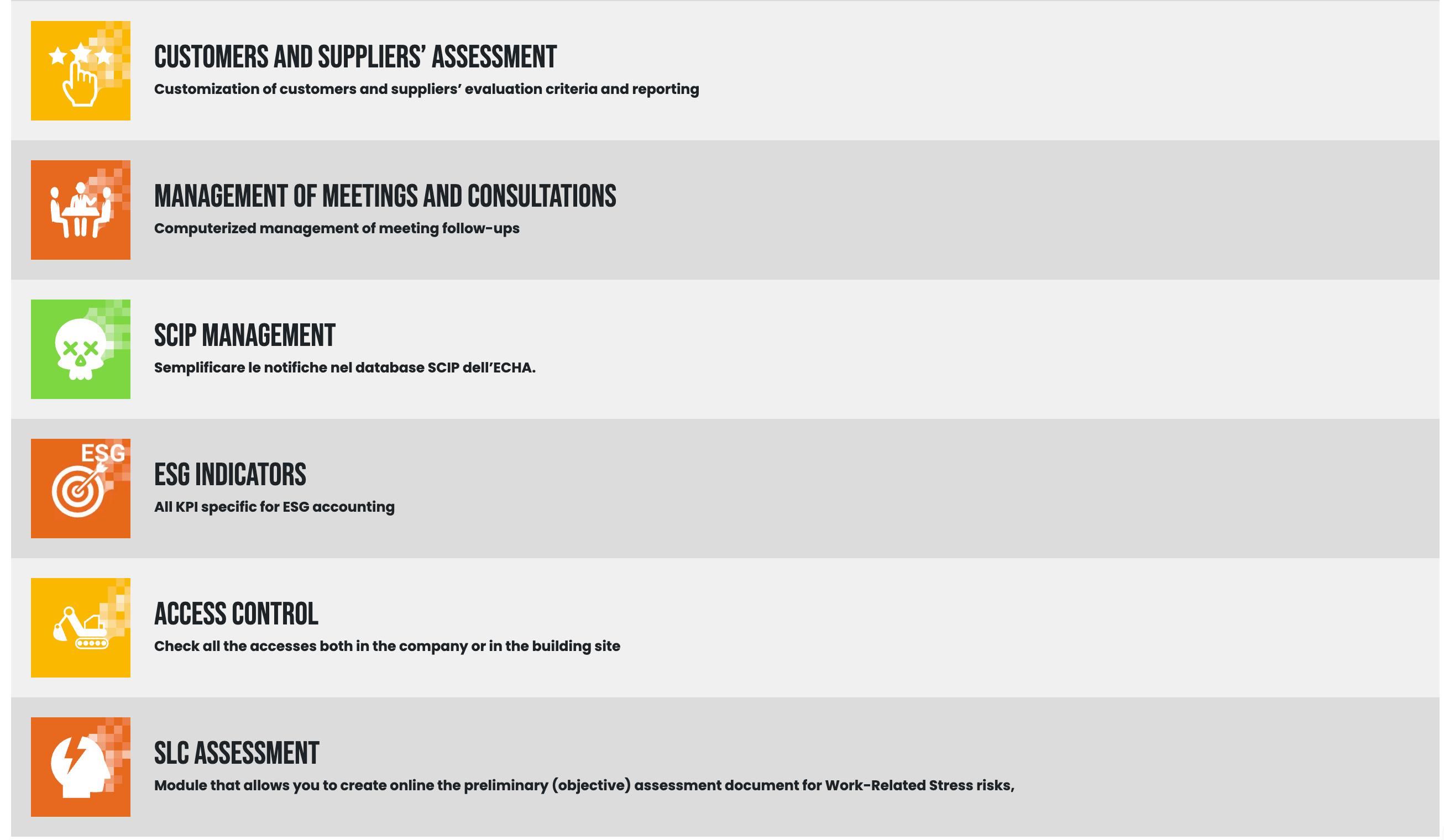 The periodic reporting phase of the aspects related to sustainability can be very onerous, Q-81 helps you to classify and sort the data, to collect them in an orderly form by involving the responsible figures, eliminating emails and spreadsheets A great saving of time and effort!