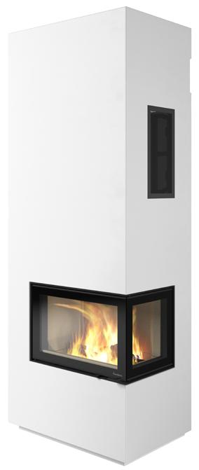 Pisa — enkel og stilren peis med høyre- eller venstrevinklet innsats og en dekorativ vednisje i siden.