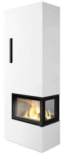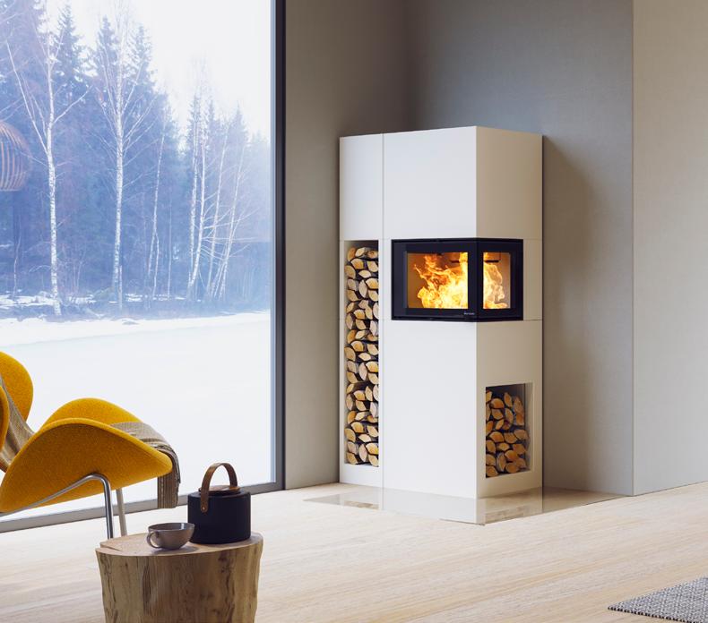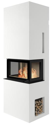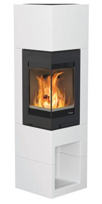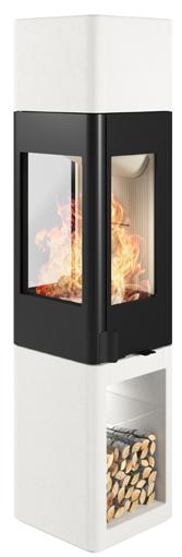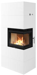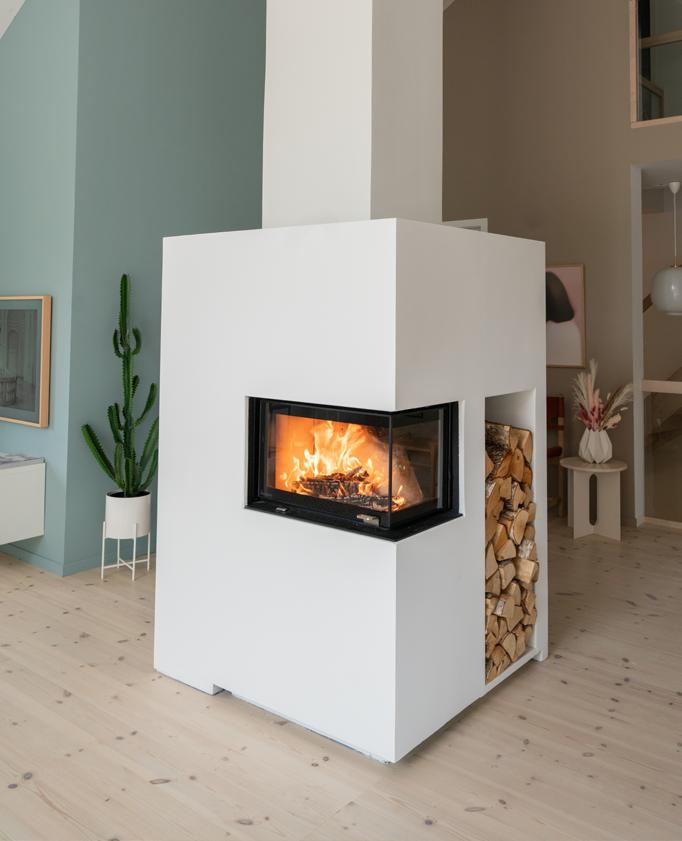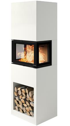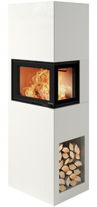 Odense ist besonders vielseitig einsetzbar. Die Kaminanlage nimmt kaum Platz ein und kann sowohl freistehend, ebenfalls vor einer geraden Wand oder auch in einer Ecke aufgestellt werden. Odense hat einen abgewinkelten Heizeinsatz, wodurch Sie das Feuer von zwei Seiten genießen können. Ebenfalls intergiert ist eine dekorative und praktische Holznische.