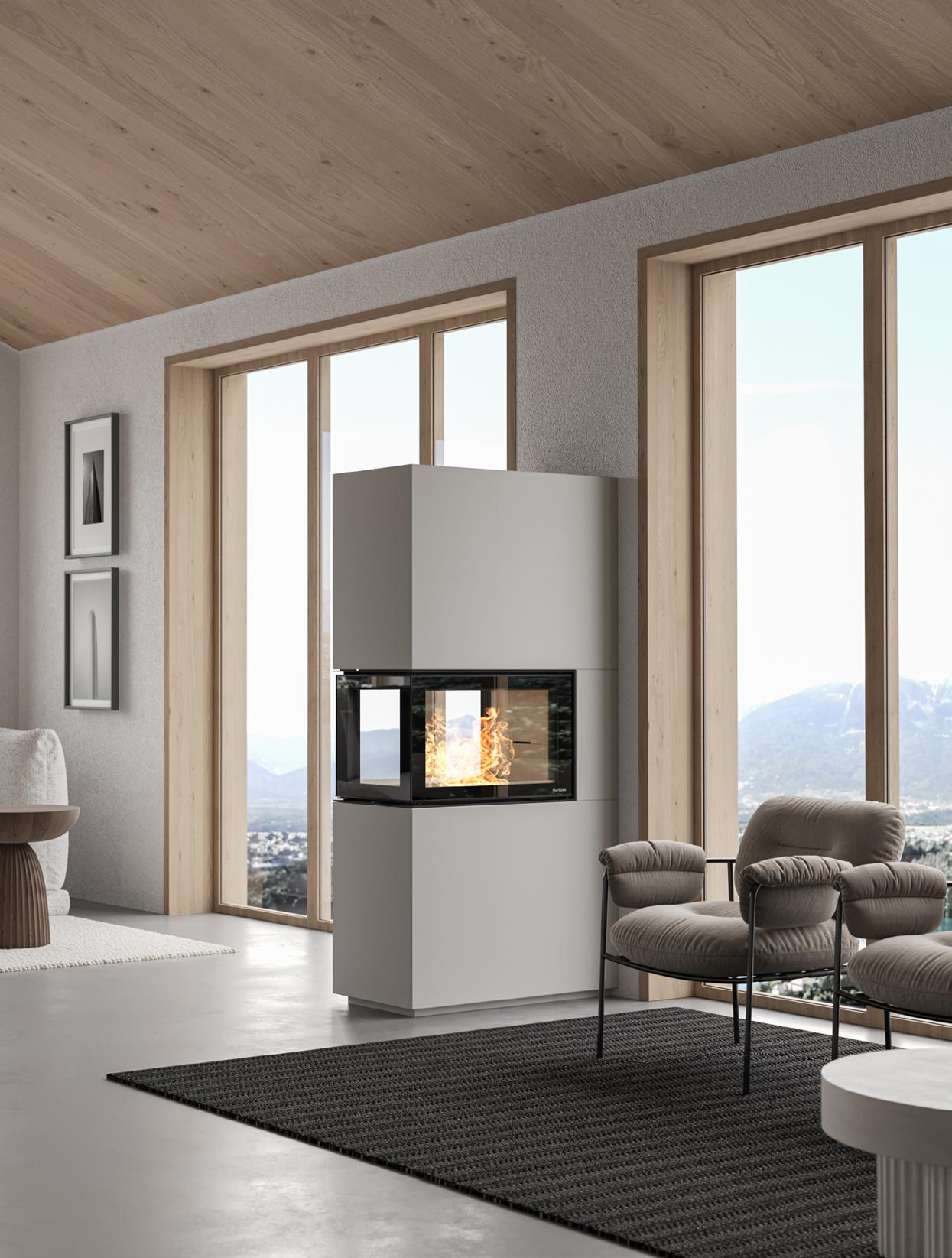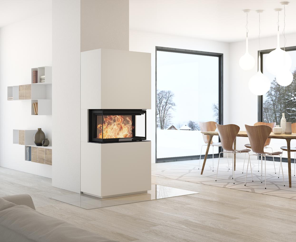 Die Serie ist mit unseren größten Heizeinsätzen ausgestattet, die eine außergewöhnliche Sicht auf die Flammen bieten. Machen Sie den Kamin zu einem spannenden Einrichtungselement oder verwenden Sie ihn als Raumteiler – ganz nach Ihren Vorstellungen.
