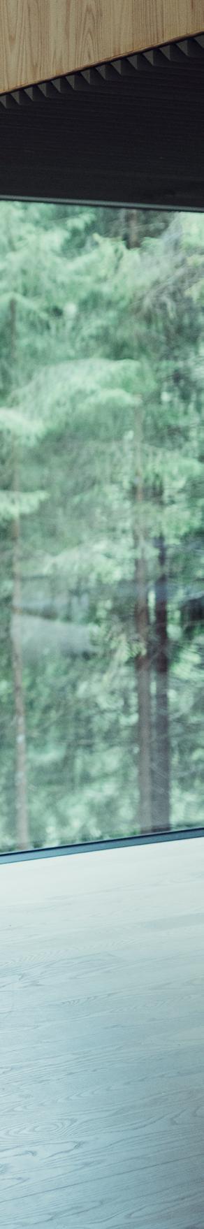 die Terrasse fort. Die grünen Töne erinnern an den Wald und das Fischgrätenmuster an der Badezimmerwand an Treibholz. Holz ist ohnehin ein Schlüsselelement im gesamten Haus: