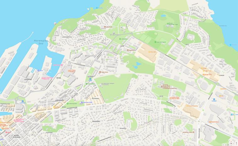 På under 10 minutter går du til City Lade, som har det aller meste. Fra deilige kanelboller på Snurr, til Vinmonopolet, restauranter og masse shoppingmuligheter.