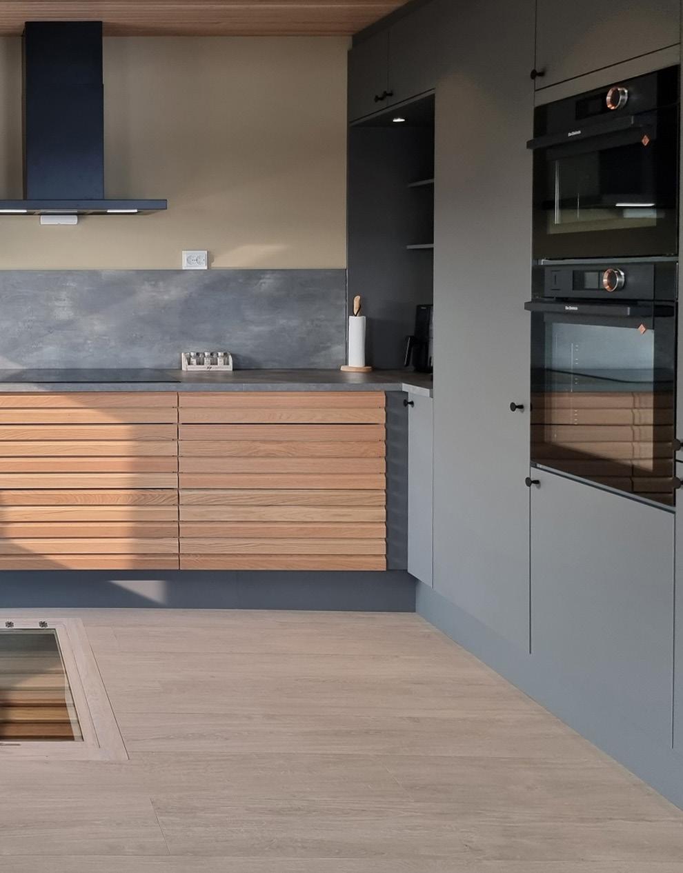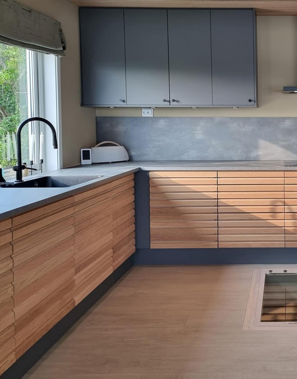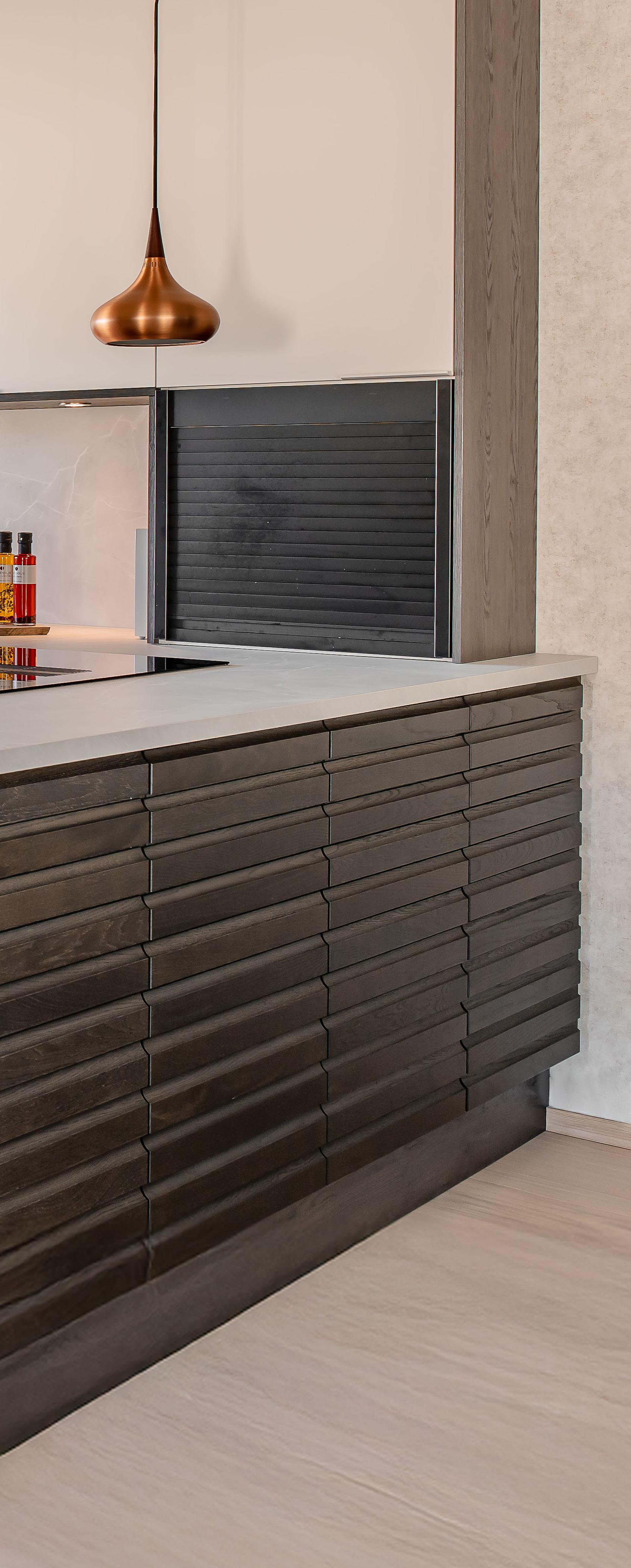 På fronten av øyen er det brukt to seksjoner med Classic Lameller i mørk heltre eik.