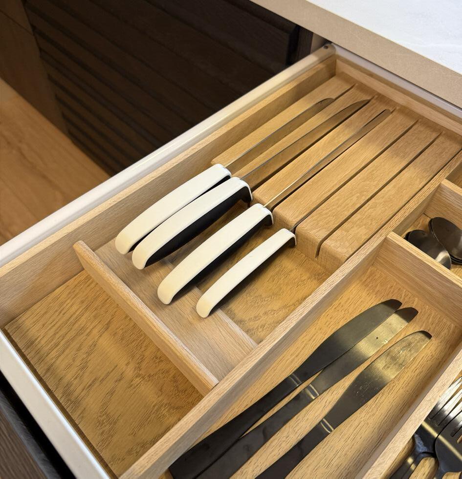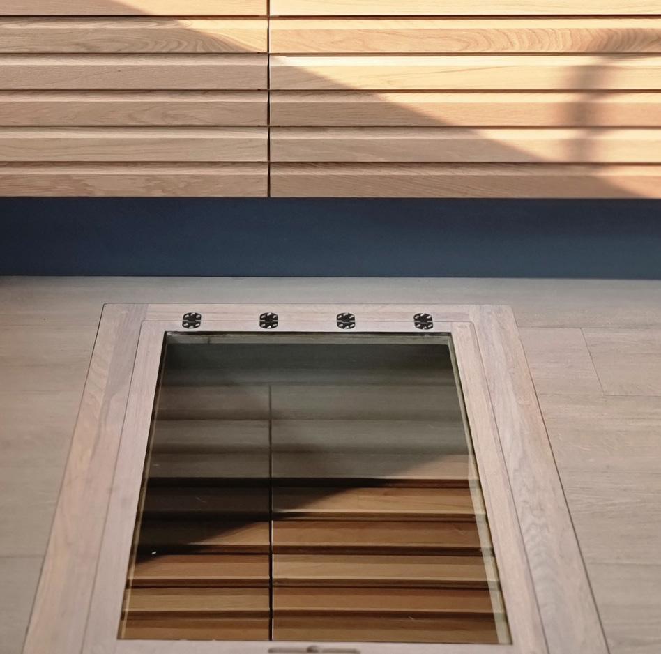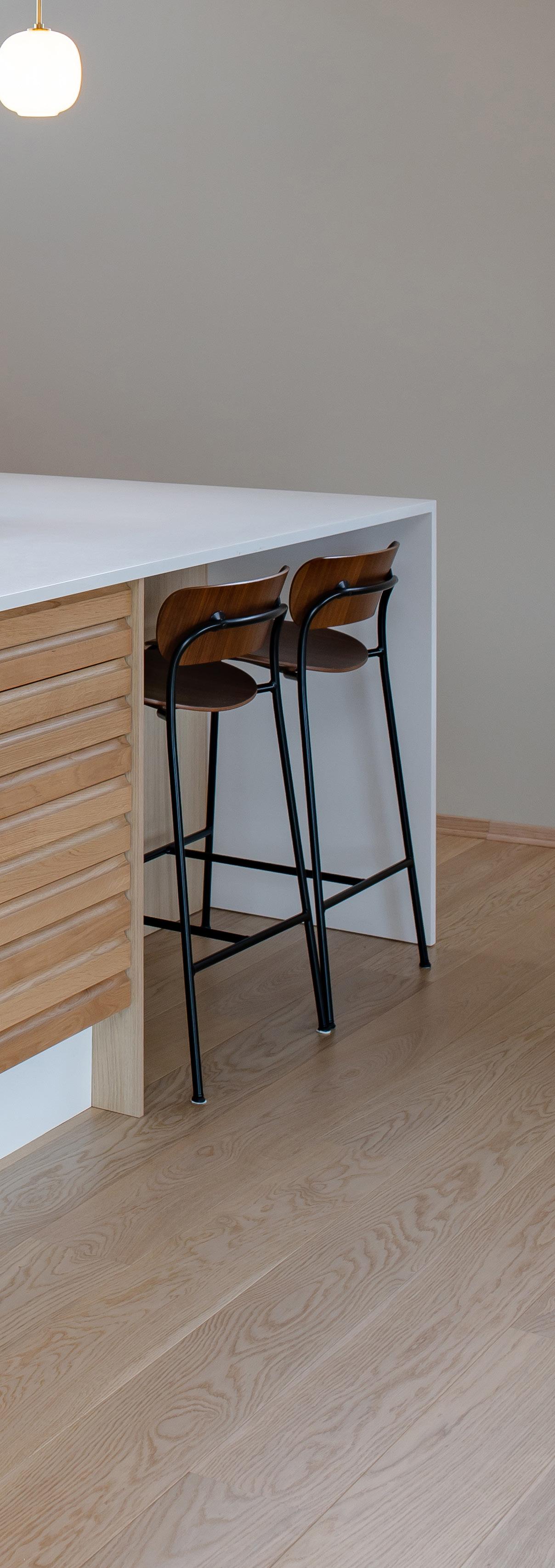 På fronten av øyen er det brukt to seksjoner med Classic Lameller i mørk heltre eik.