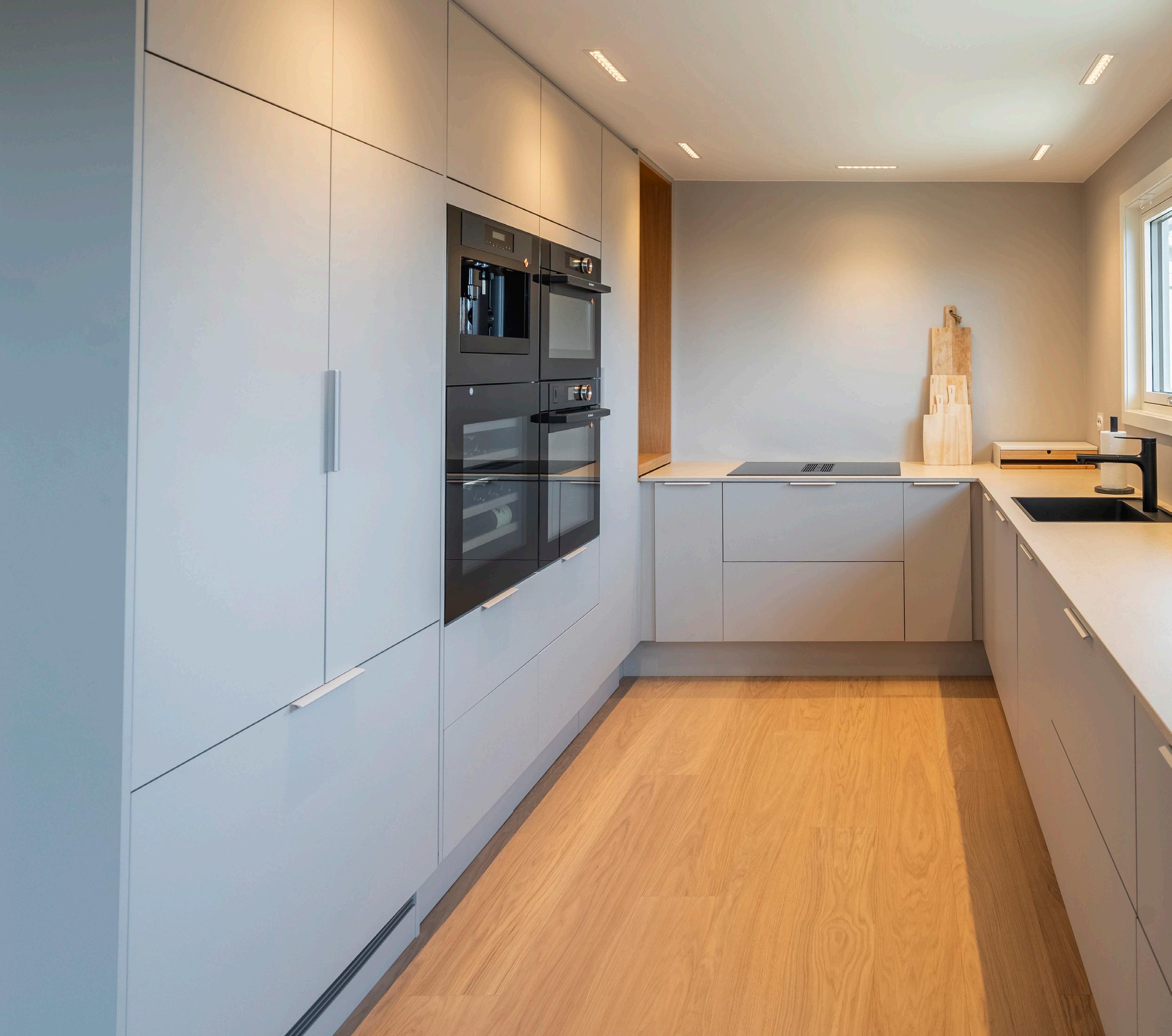 Dette kjøkkenet i Volda er utformet for å gi et stilrent og tidløst uttrykk, med rene linjer og høy slitestyrke. Modellen i høytrykkslaminat er ideell for deg som ønsker en kombinasjon av estetikk og praktiske løsninger.