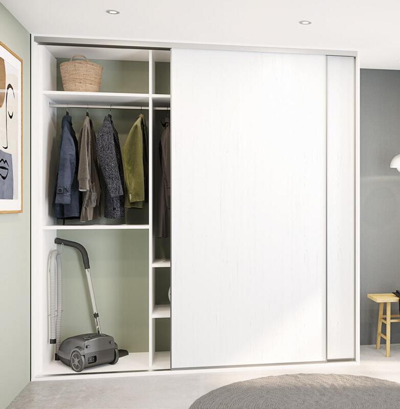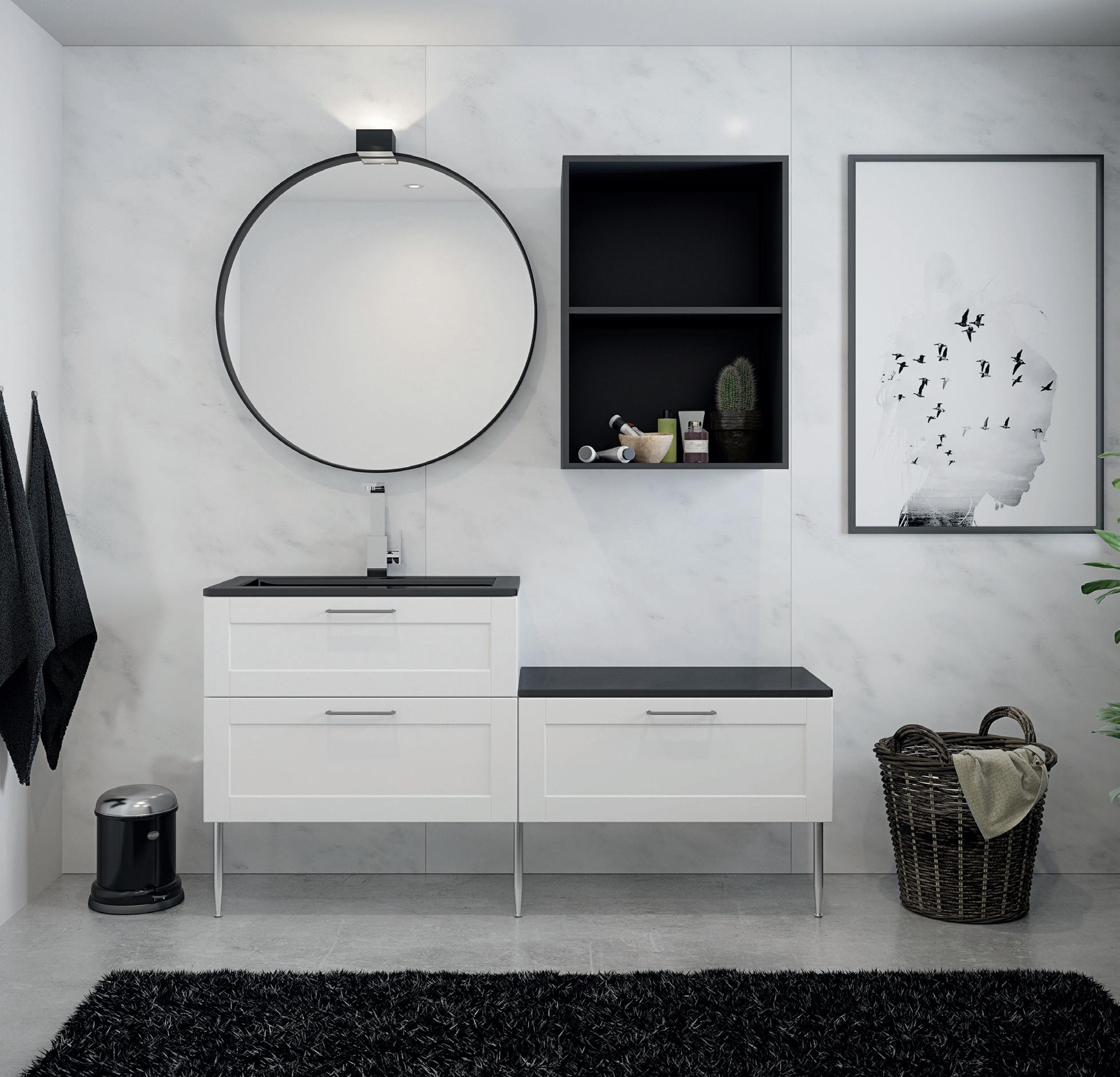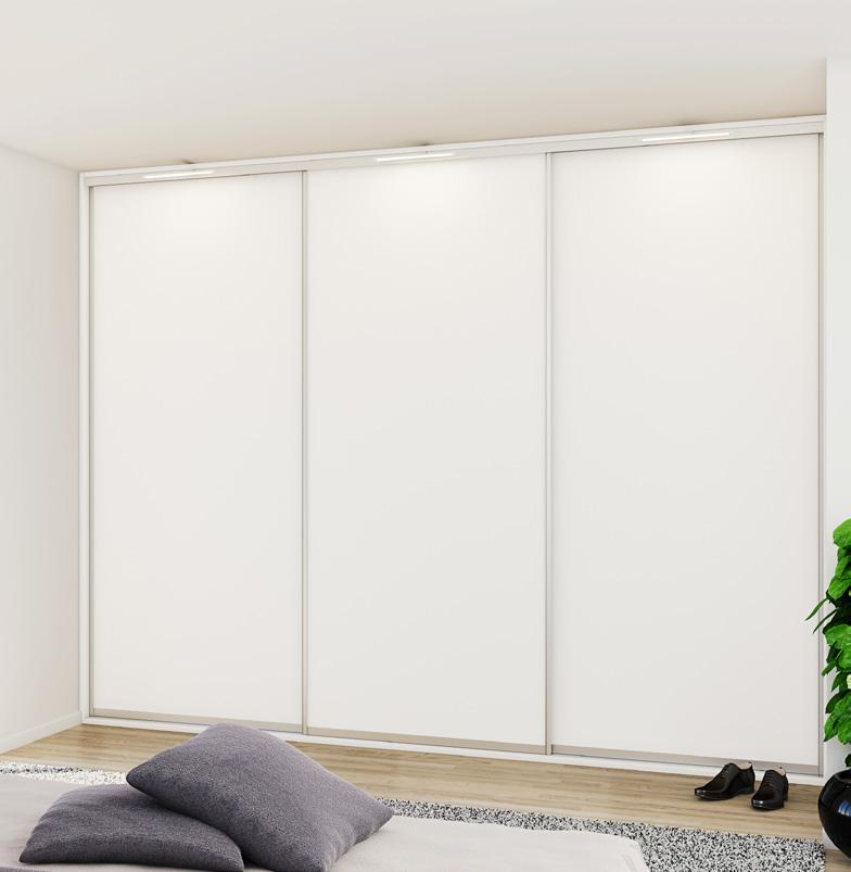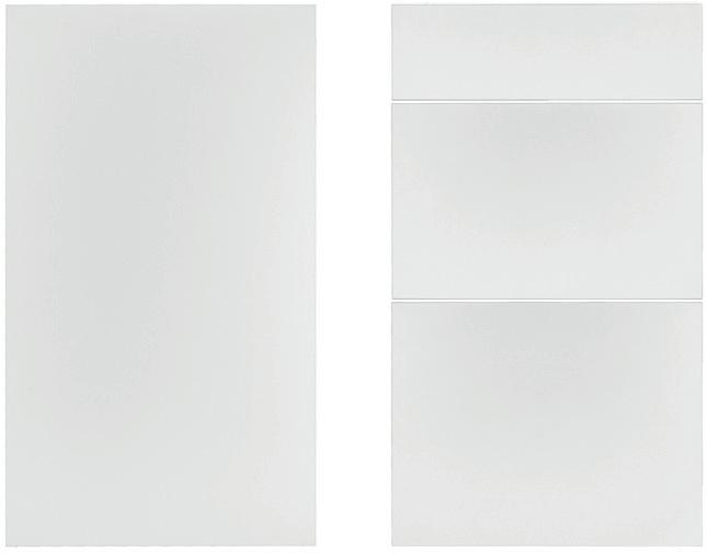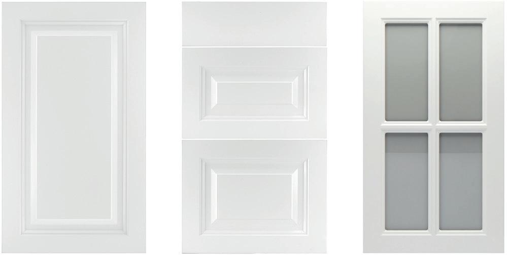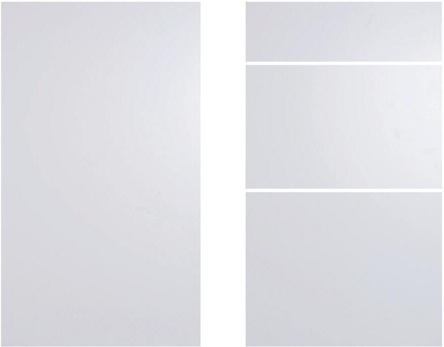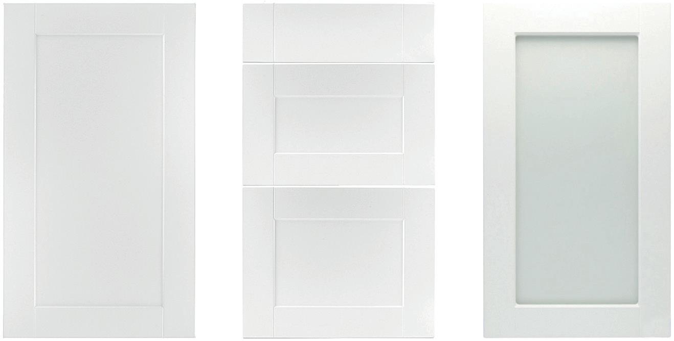 Roma-modellen er laget av 19 mm sponplater belagt med melamin og har en hvit lakkert overflate som gir et moderne og stilrent uttrykk.