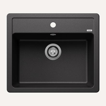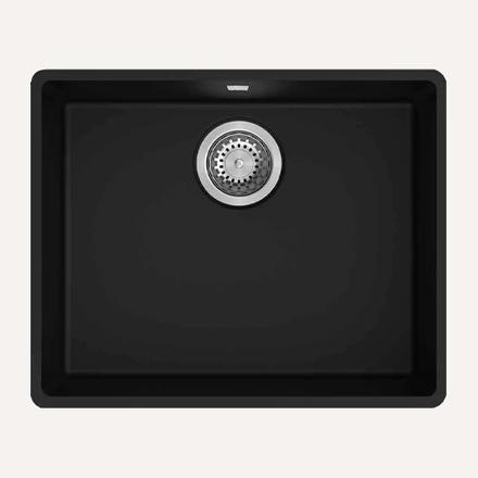 Matt sort vask med mauel strainer. Finnes kun til underlimning.
