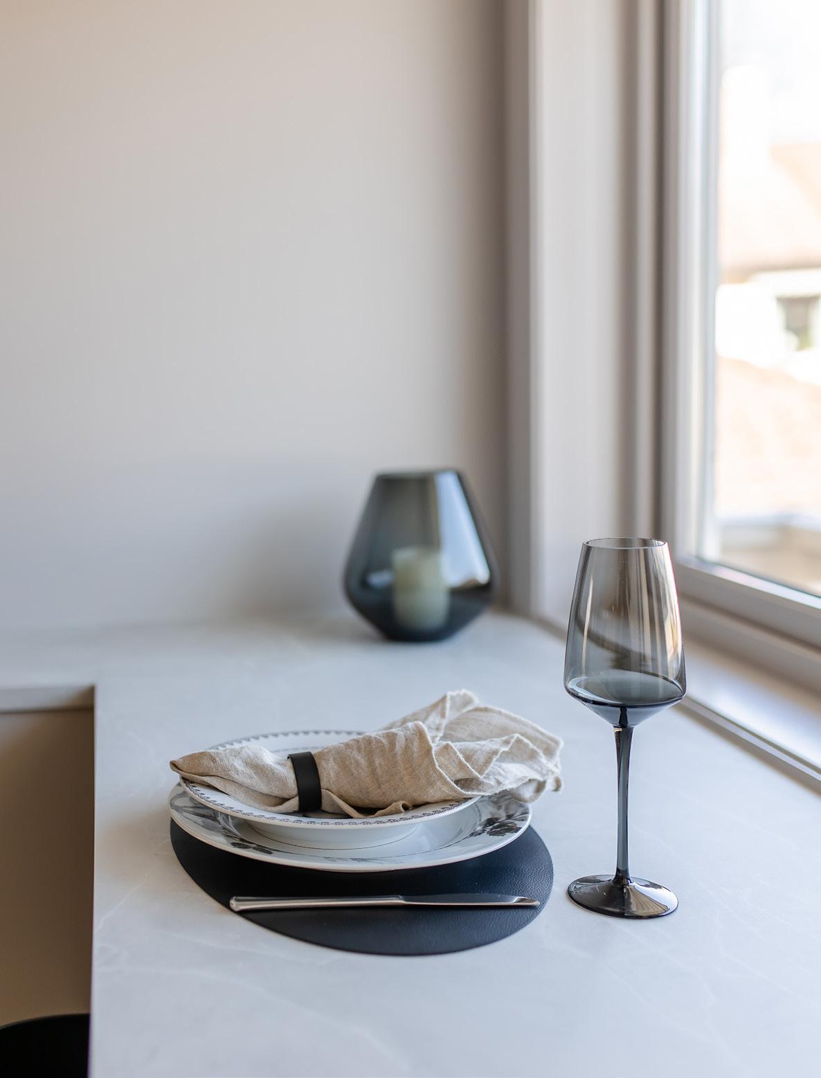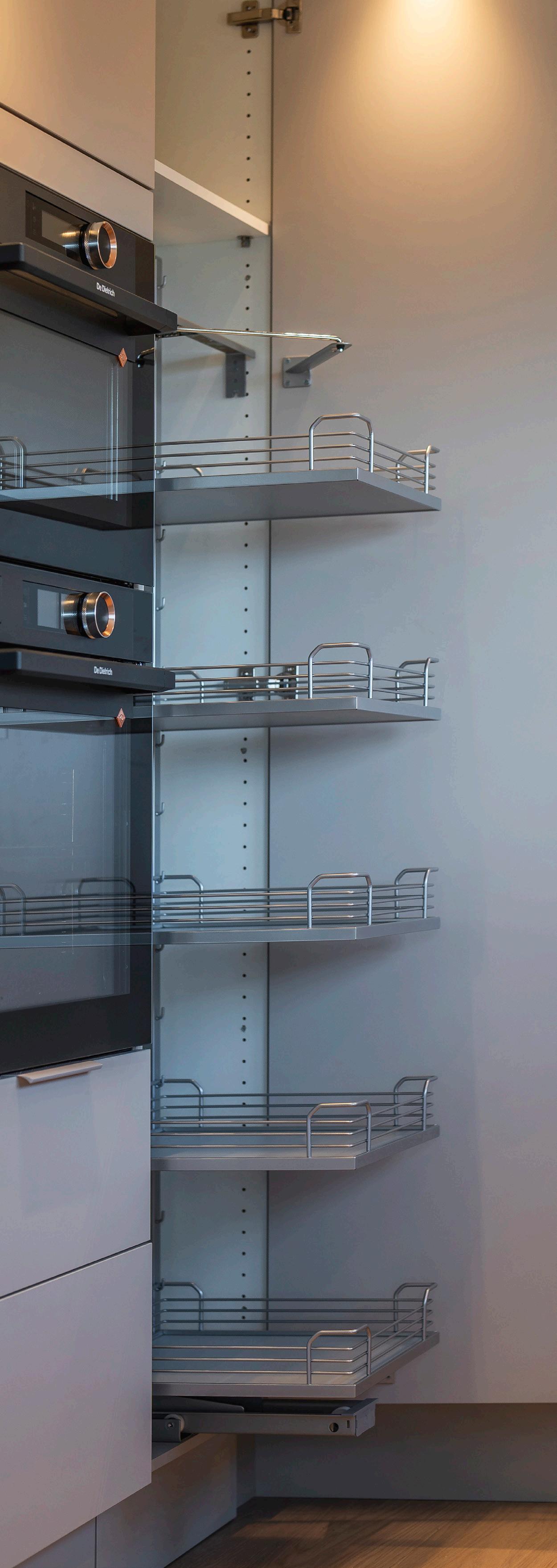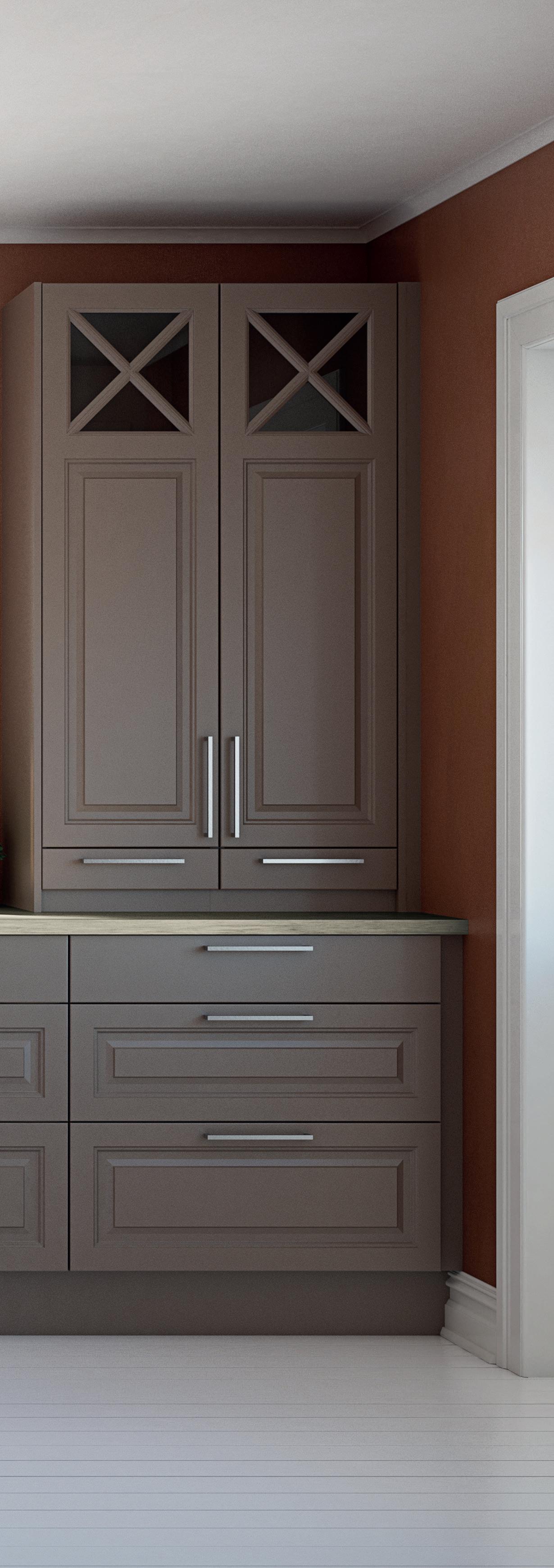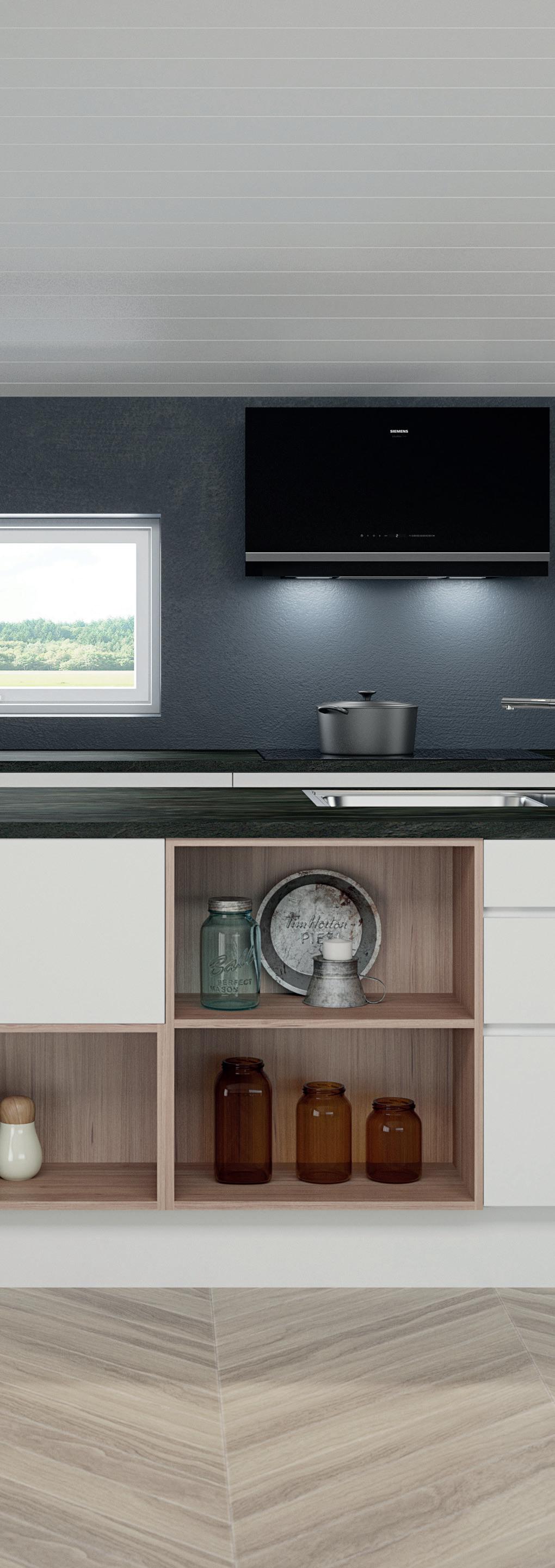 For et stilfullt og luftig uttrykk kan Design-modellen også kombineres med Alu Vitrine-dører.