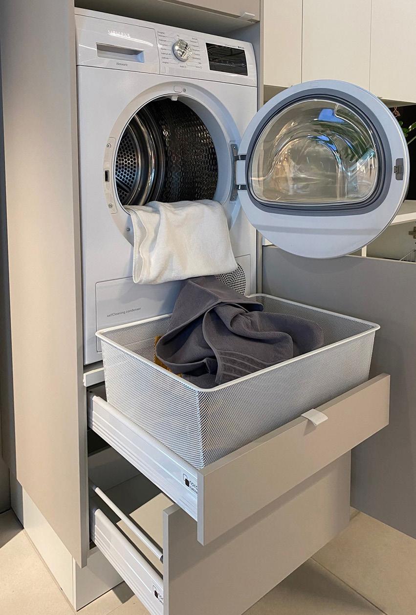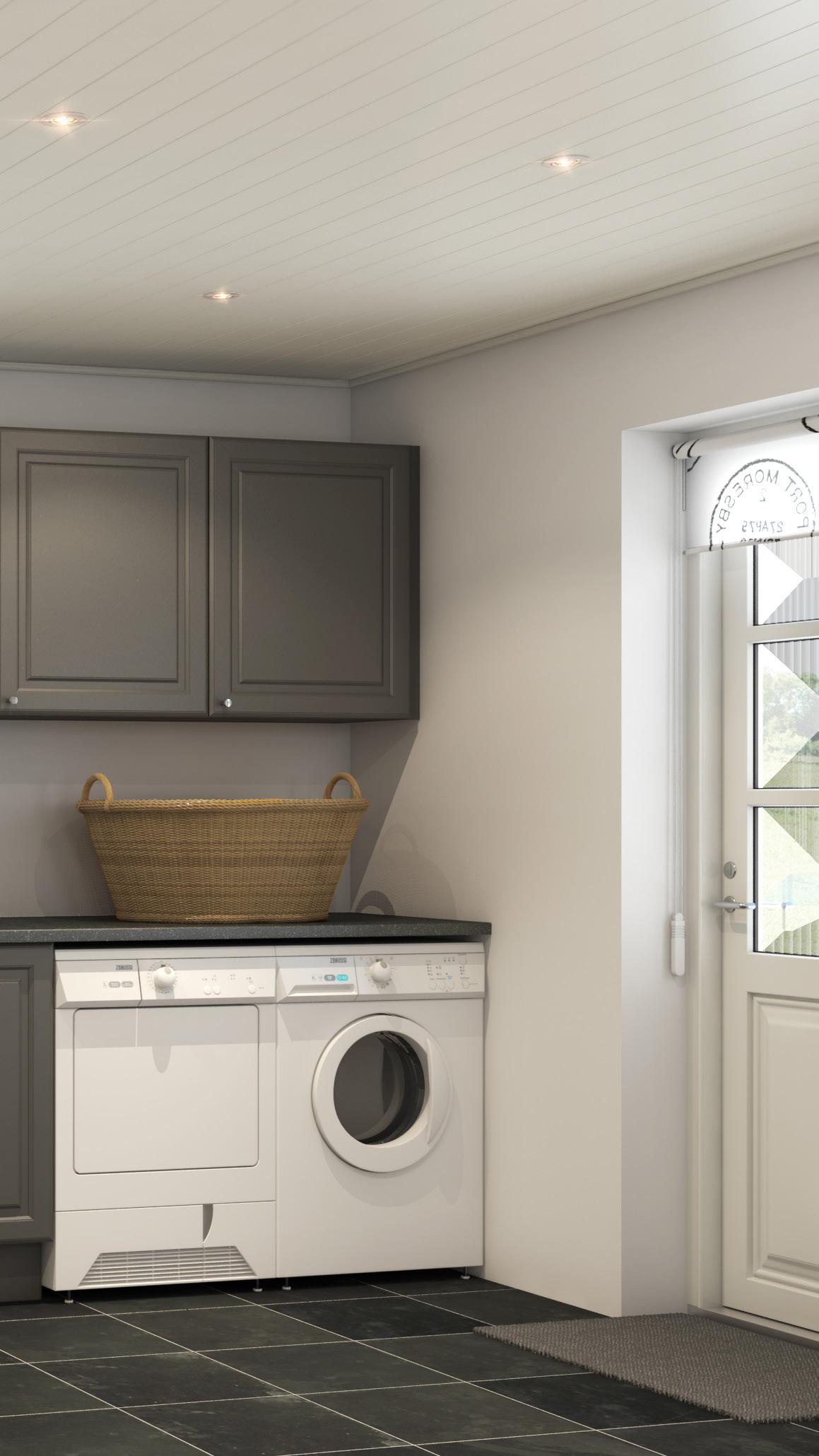 På vaskerommet ønsket parett et friskere uttrykk. Valget falt på Pisa grønn, en modell laget i resirkulerbart materiale, med en lekker grønnfarge inspirert av den norske naturen. Resultatet er et vaskerom som både er funksjonelt, bærekraftig og estetisk tiltalende.