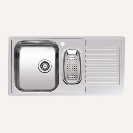 1 ½ skål vask med kranhull og manuell strainer. Finnes både for nedfelling og underliming med stor skål til høyre eller venstre. Passer til 60 cm skap.