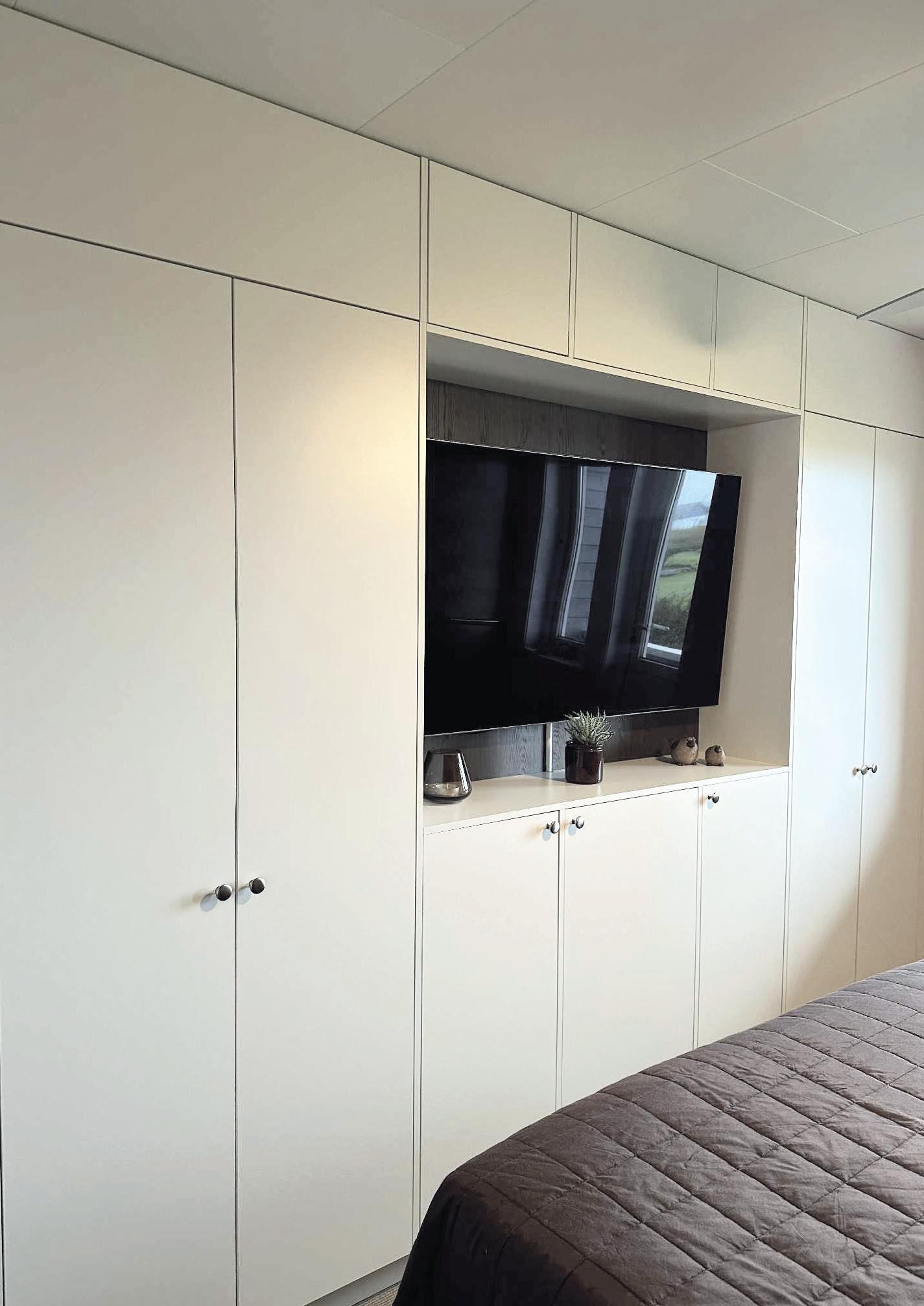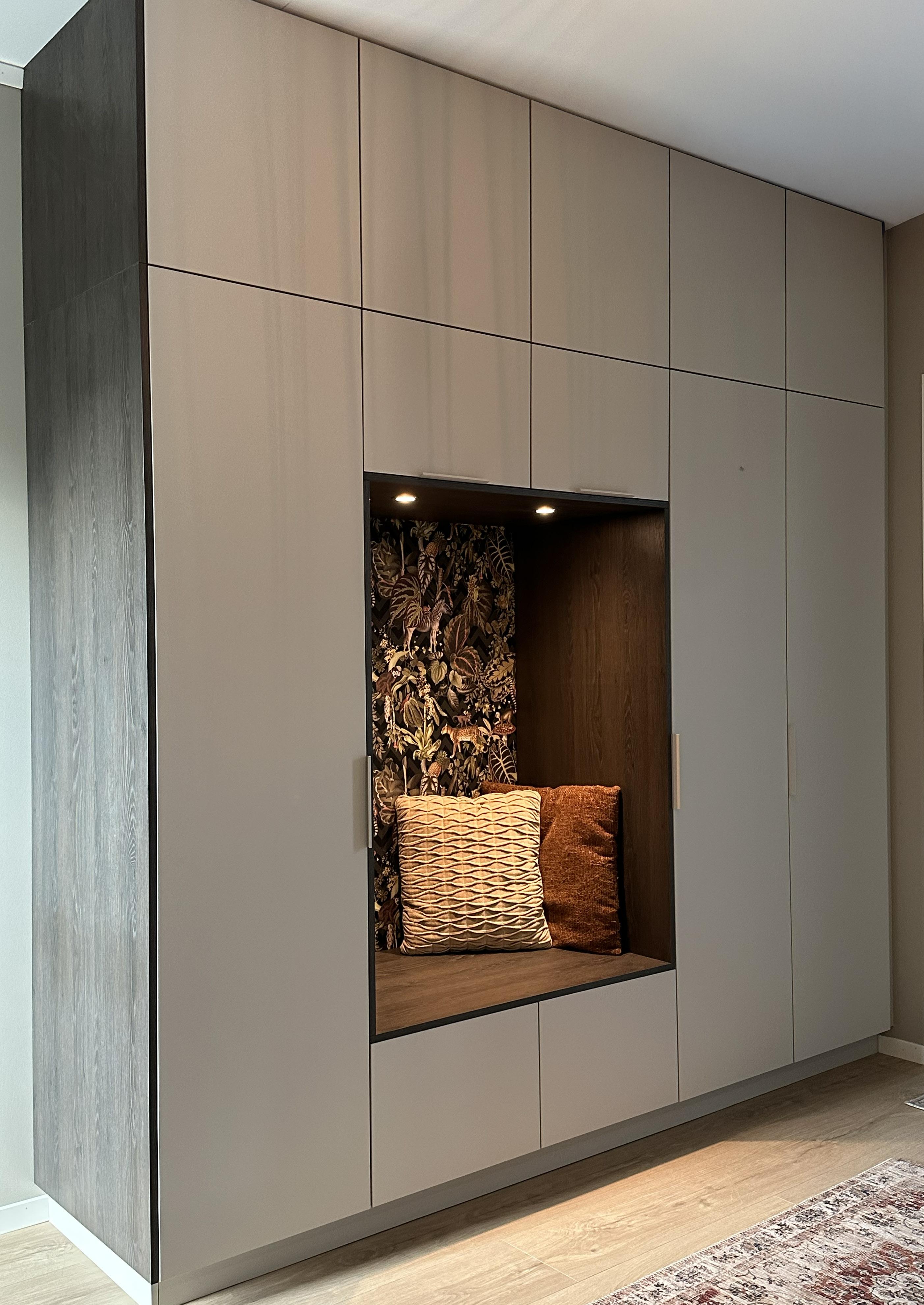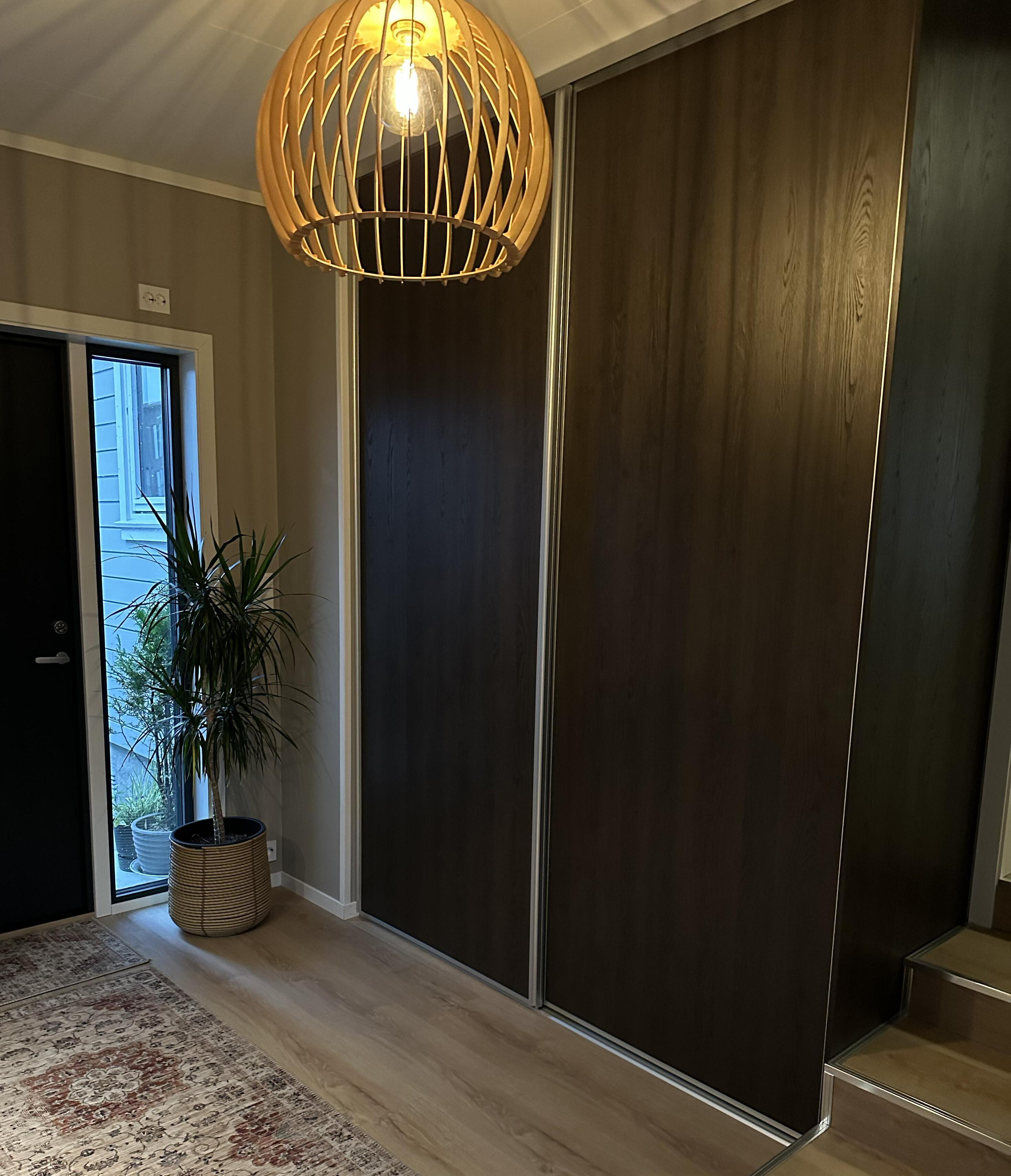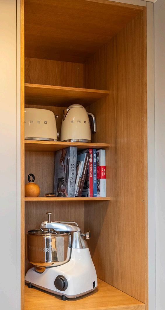 Hos en kunde i Lyngdal fikk vi muligheten til å skape en helt spesiell løsning. De ønsket en skjult inngang til spisskammeret direkte fra kjøkkenet. Med en spesialtilpasset dør ble dette elegant integrert i innredningen. Bak døren skjuler det seg et rom med fryseskap og god oppbevaringsplass for tørrvarer og kjøkkenutstyr – både praktisk og smart.