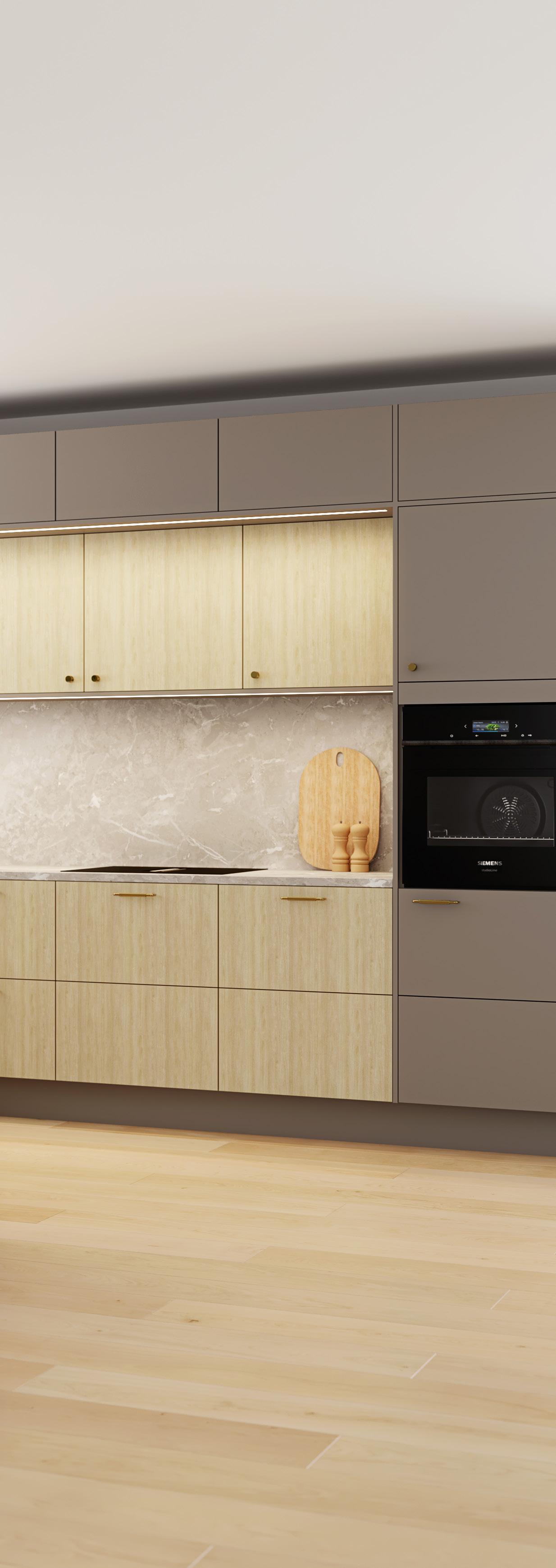 Classic Lamell står seg nydelig for seg selv, men kombineres ofte med andre kjøkkenmodeller for å skape kontraster og for å skape en visuell soneinndeling i kjøkkenet.