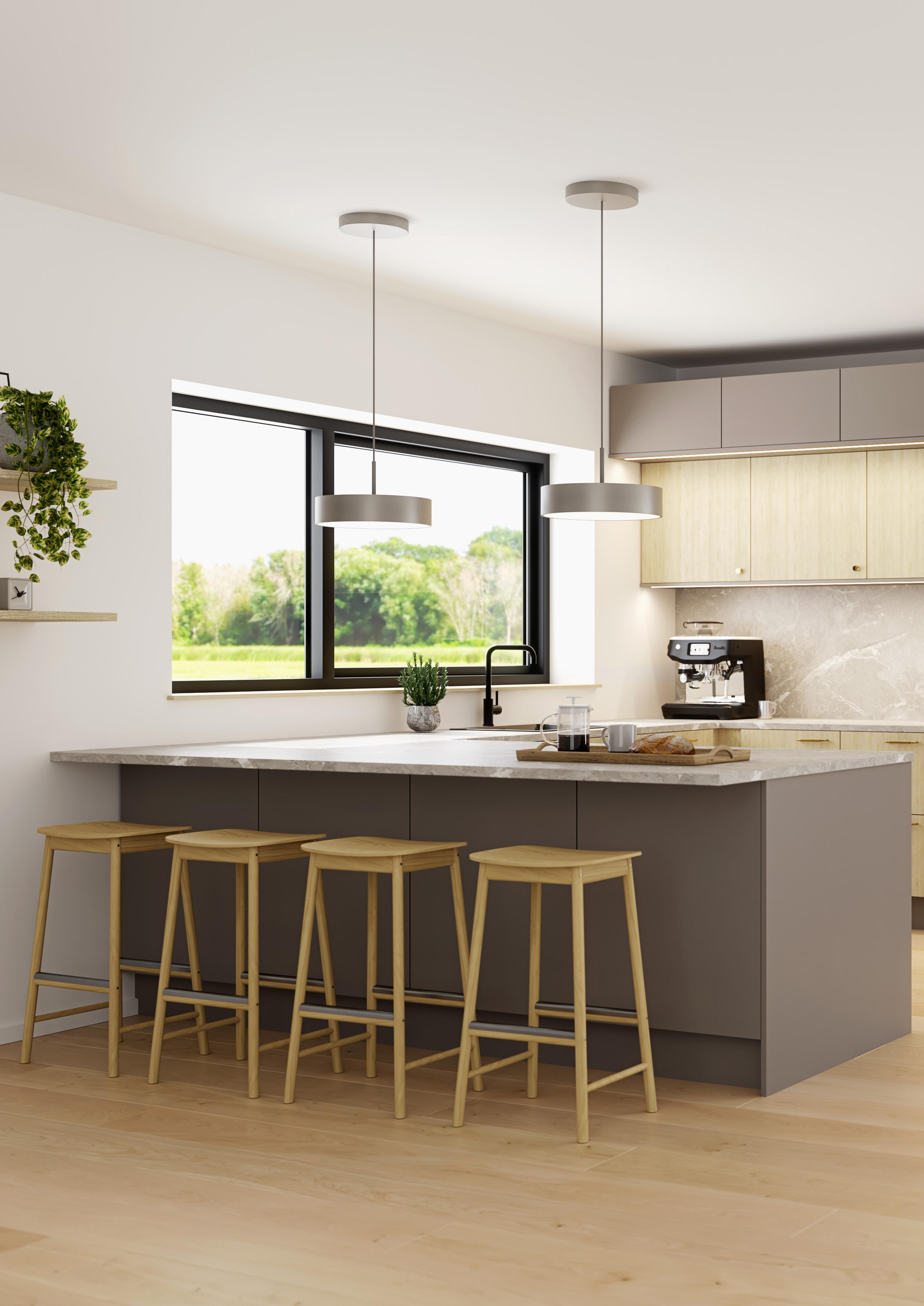 Med Design-modellen fra Nordsjø får du et kjøkken som både er pent og praktisk. Moderne eleganse og funksjonalitet i høytrykkslaminat.