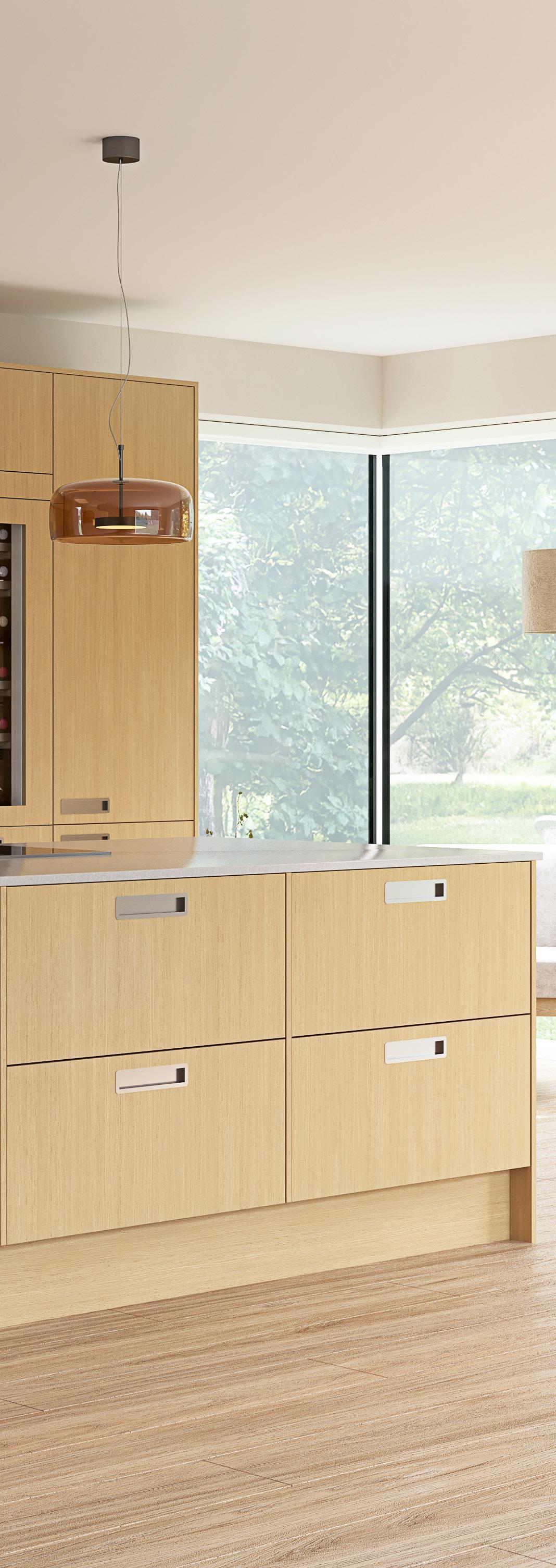 Natur eik er en møbelfront i 20 mm massiv eik med klar lakk som fremhever treets naturlige skjønnhet. Frontene behandles med matt lakk for å unngå synlige fingeravtrykk ved daglig bruk. Den varme gløden fra naturen og de vakre detaljene gjør dette til et tidløst valg.