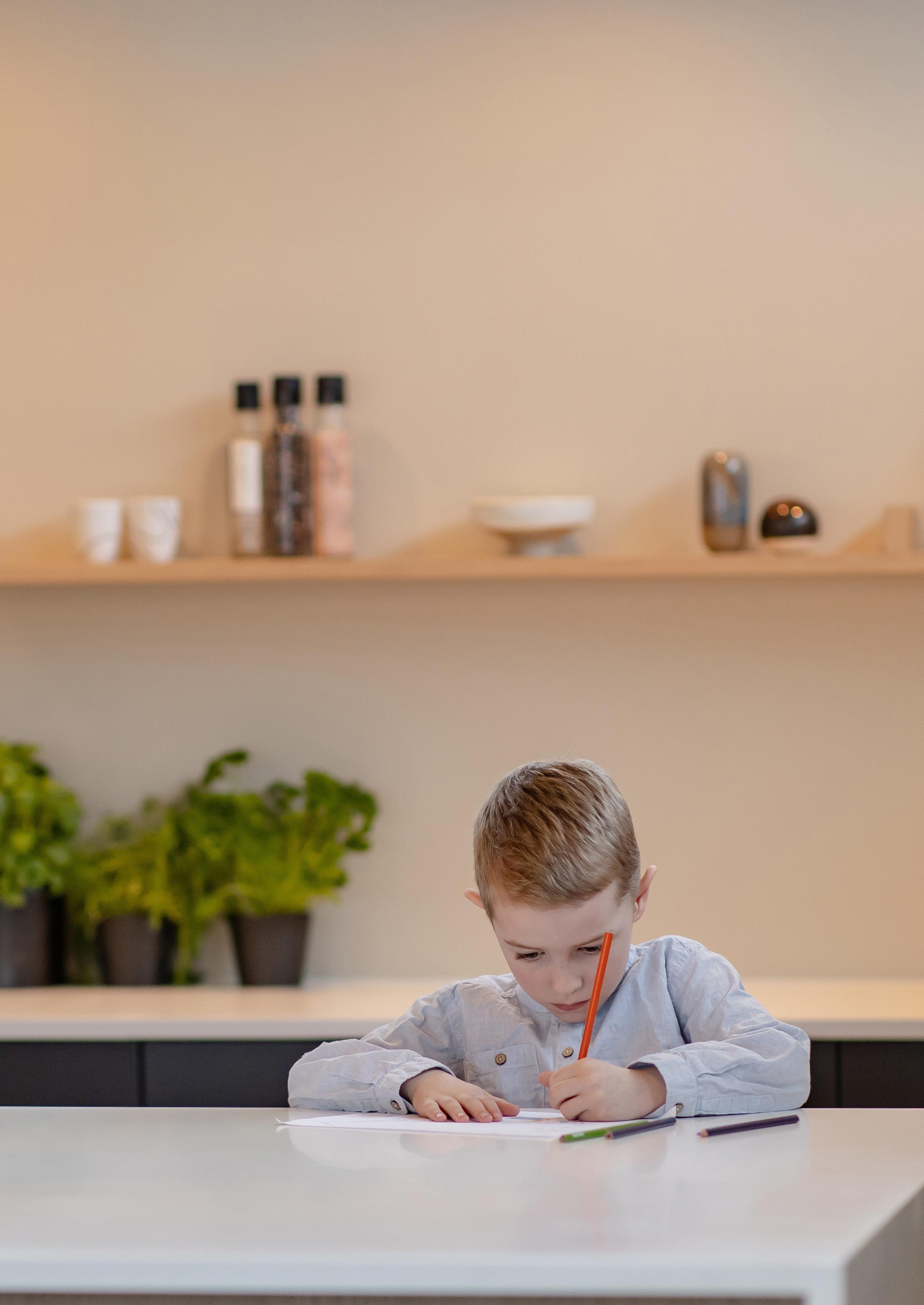Kjøkkenøyen med marmor-look skaper et luksuriøst preg, samtidig som rommet føles åpent og innbydende. Med Nordsjø Design kan du skape et kjøkken som tåler daglig bruk og samtidig gir en følelse av eksklusivitet.
