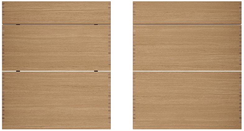 For å tilby en enklere og mer kostnadseffektiv modell, har Natur eik fingertappede hjørner på frontene. Dette bevarer det karakteristiske utseendet, samtidig som du får ekte håndverkskvalitet til en virkelig god pris.