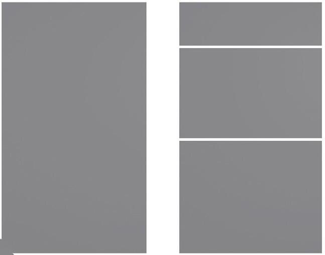 Milano-modellen er laget av 19 mm sponplater med en robust, matt spesialmelaminoverflate som har en fleksibel finish. Kanten er forsterket med solid 1,0 mm ABS for ekstra holdbarhet og slitestyrke.