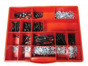 This kit contains a selection of socket head, flat head, and button head cap screws. The sizes range from #6 through 3/8”. The kit contains bolts, nuts, lock washers, and flat washers. This is a selection of the most common fasteners used on all Norfield machinery. This kit also contains a bolt gauge so you can easily identify the bolt that you need. If you have any Norfield machine, you should have this kit.