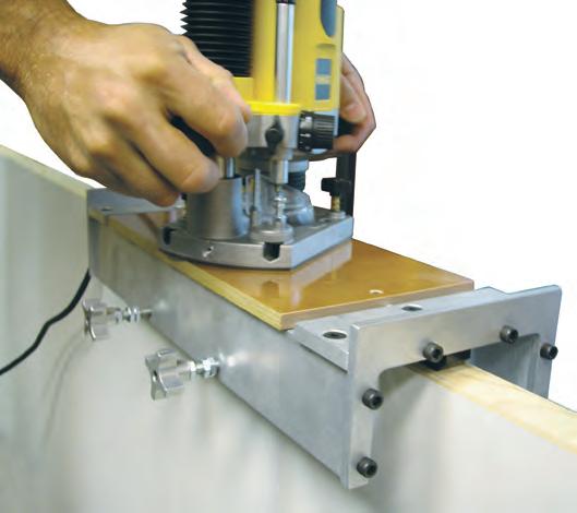 • Use the Norfield HingeMaster and the router to simultaneously mortise the door and jamb for 3-1/2”, 4” or 4-1/2” hinges. Template guides and router bits are included for either 1/4” radius hinges or 5/8” radius hinges.