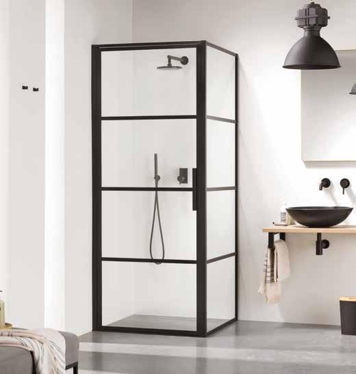 Soho® veggene har ett helt glass felt. De sorte profilene på glasset er kun på utsiden, da er det lett å rengjøre glasset på innsiden etter en dusj. Med Sealglas anti-kalk belegg holder glasset seg fritt for smuss og klart lengre.