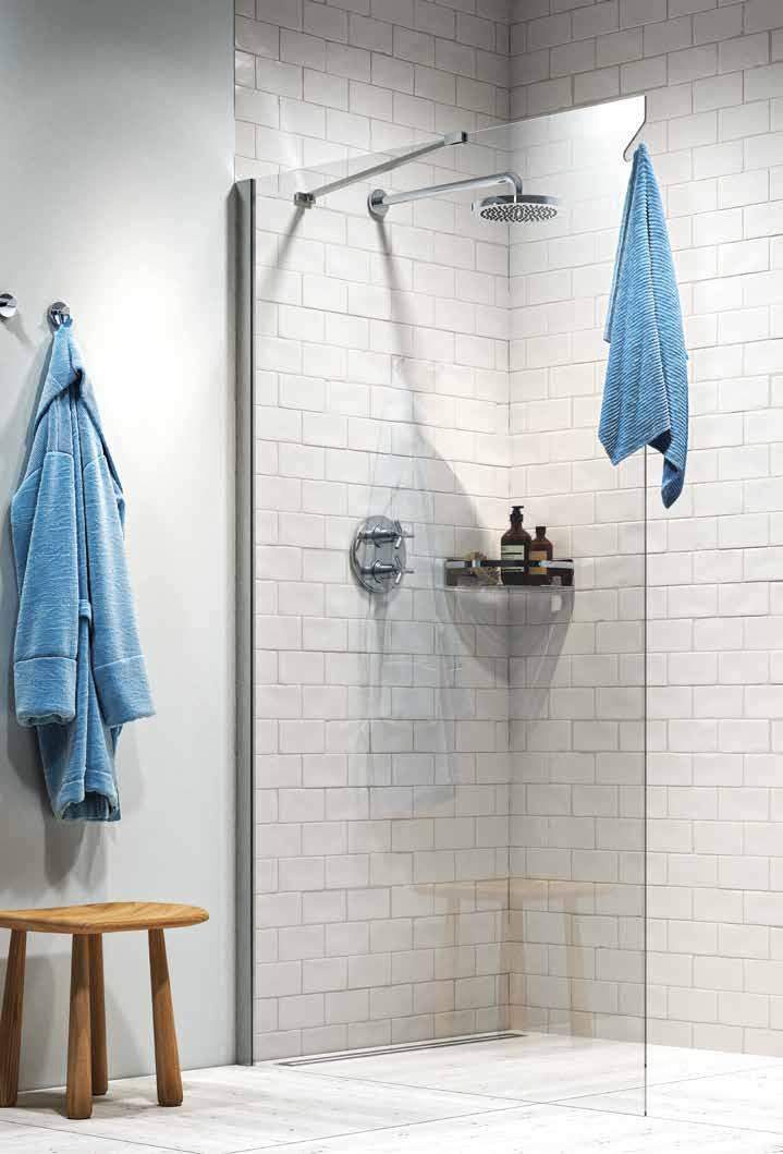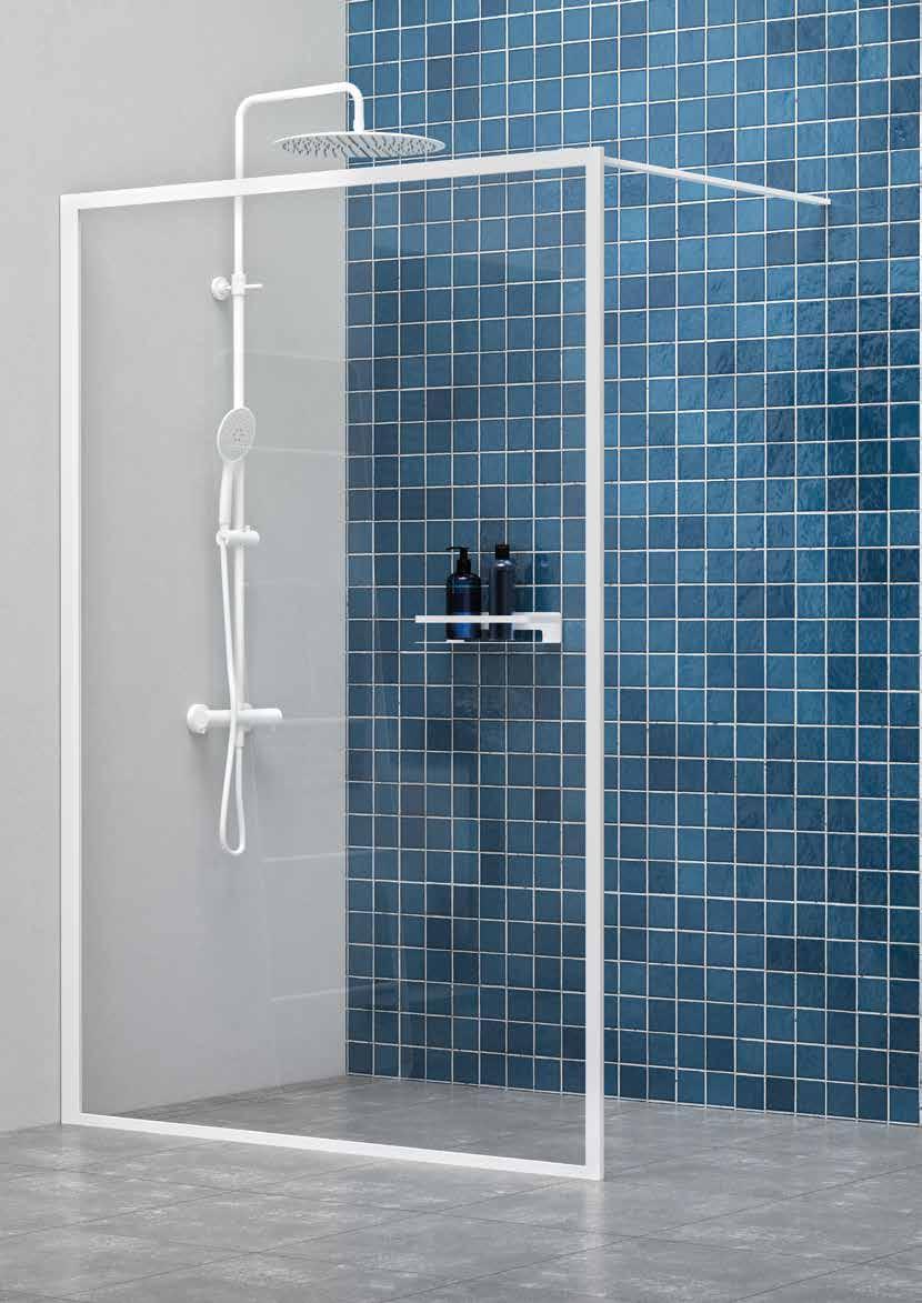 Contour-dusjer kan i tillegg til nisjedør og dusjhjørne fås som walk-in dusj.