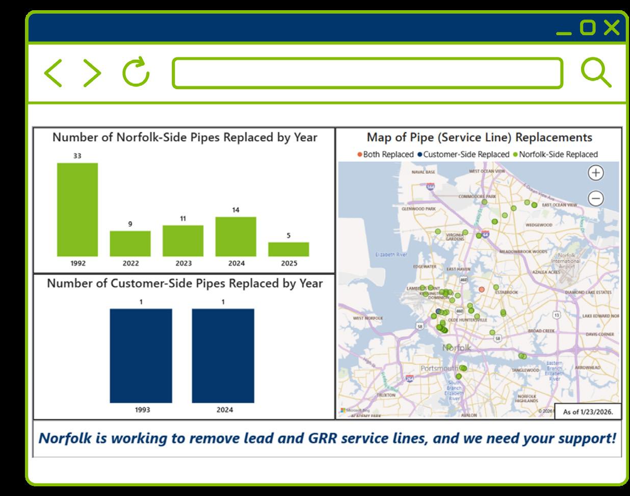 CivicLab worked with Norfolk Utilities to create a data story that tracks progress on replacing lead and galvanized service lines. The interactive resource shows inventory maps, material verification data and daily updates on replacements. Residents can look up their address, report unknown service line materials and learn how to access free replacement services through the Open Data Portal. This tool improves transparency and helps the City meet federal goals ahead of schedule.