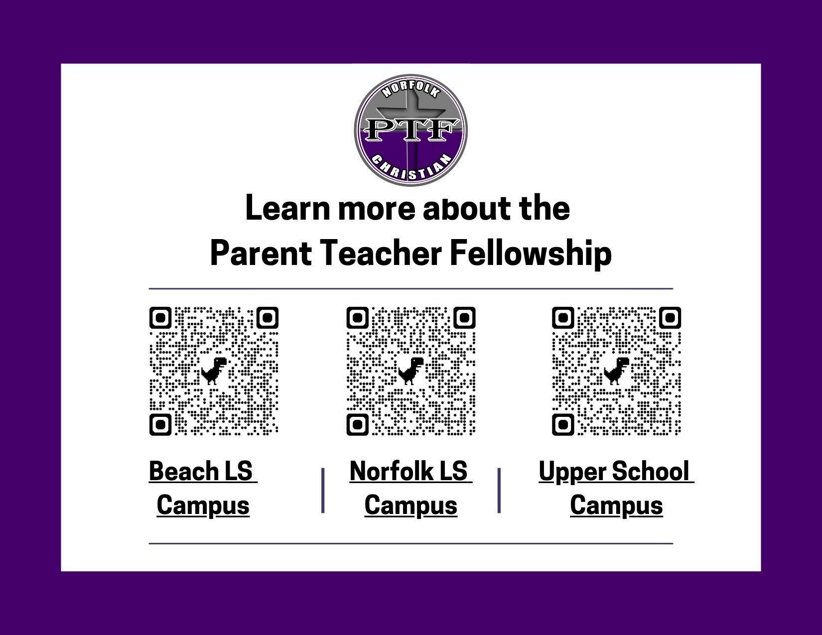 The Parent Teacher Fellowship (PTF) at Norfolk Christian is comprised of parent volunteers who desire to partner with teachers and administrators to grow and strengthen our school community. The administration, faculty and staff truly welcome parent involvement at all three of our campuses.