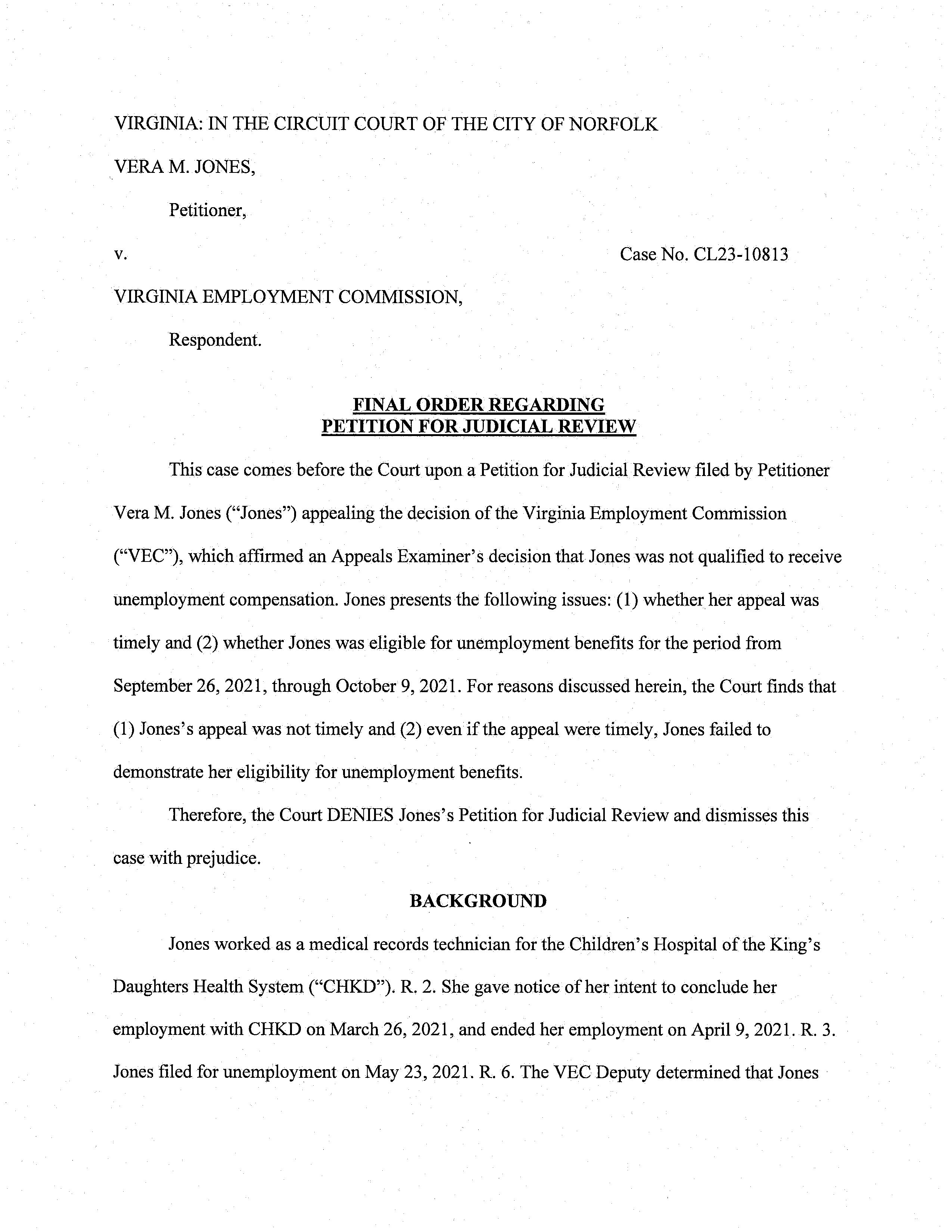 Jones v VEC by Norfolk Circuit Court Clerk's Office - Issuu