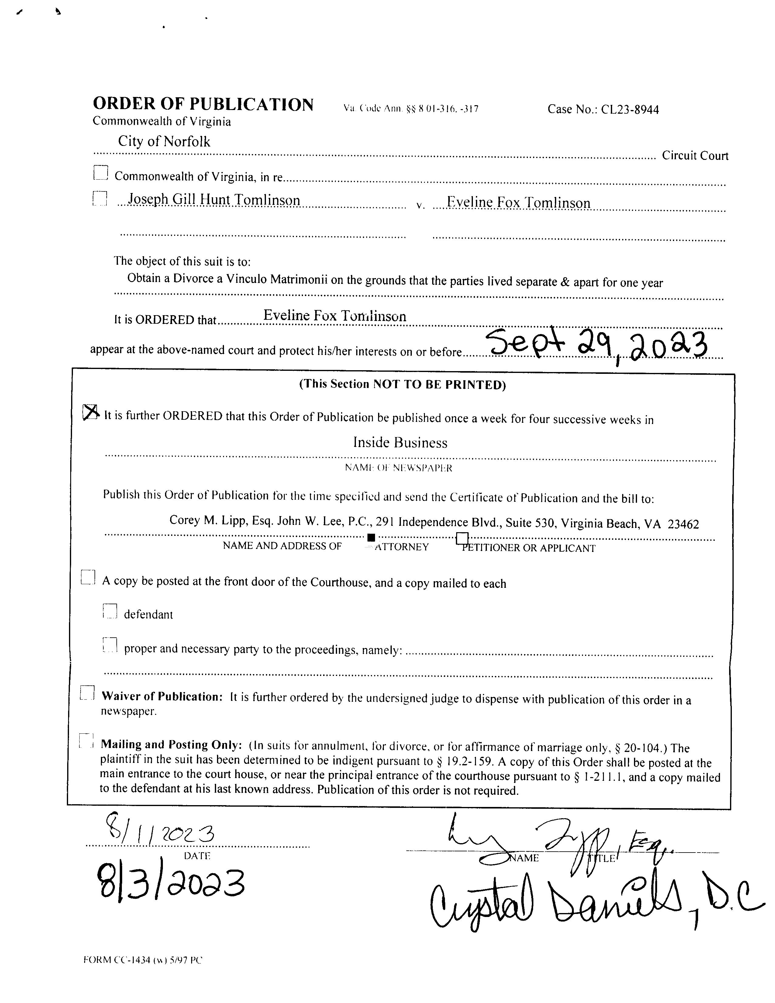 CL23-8944 ORDER OF PUBLICATION by Norfolk Circuit Court Clerk's Office - Issuu