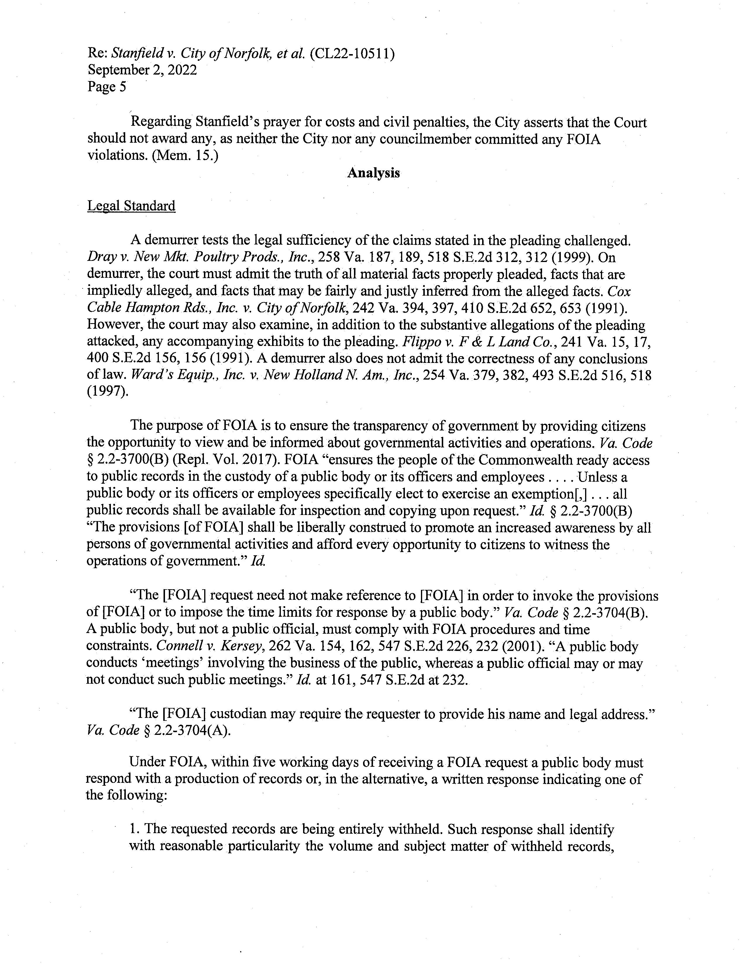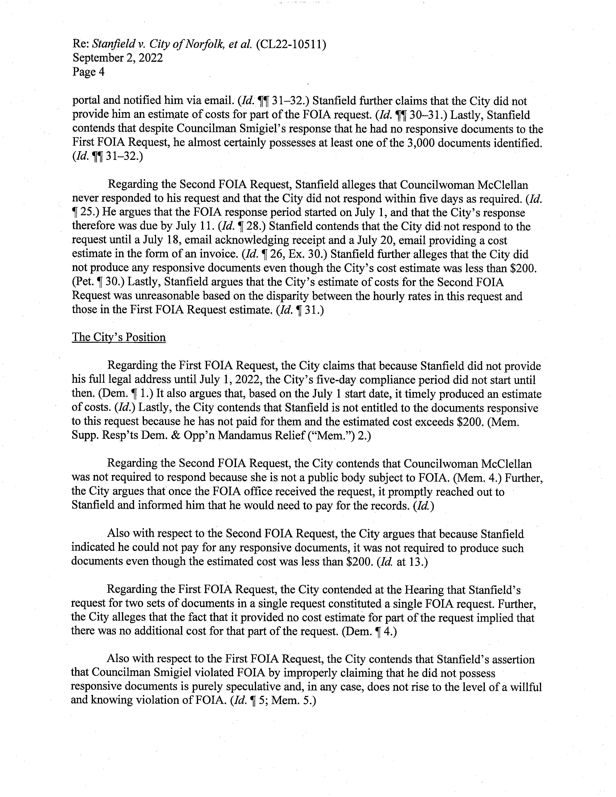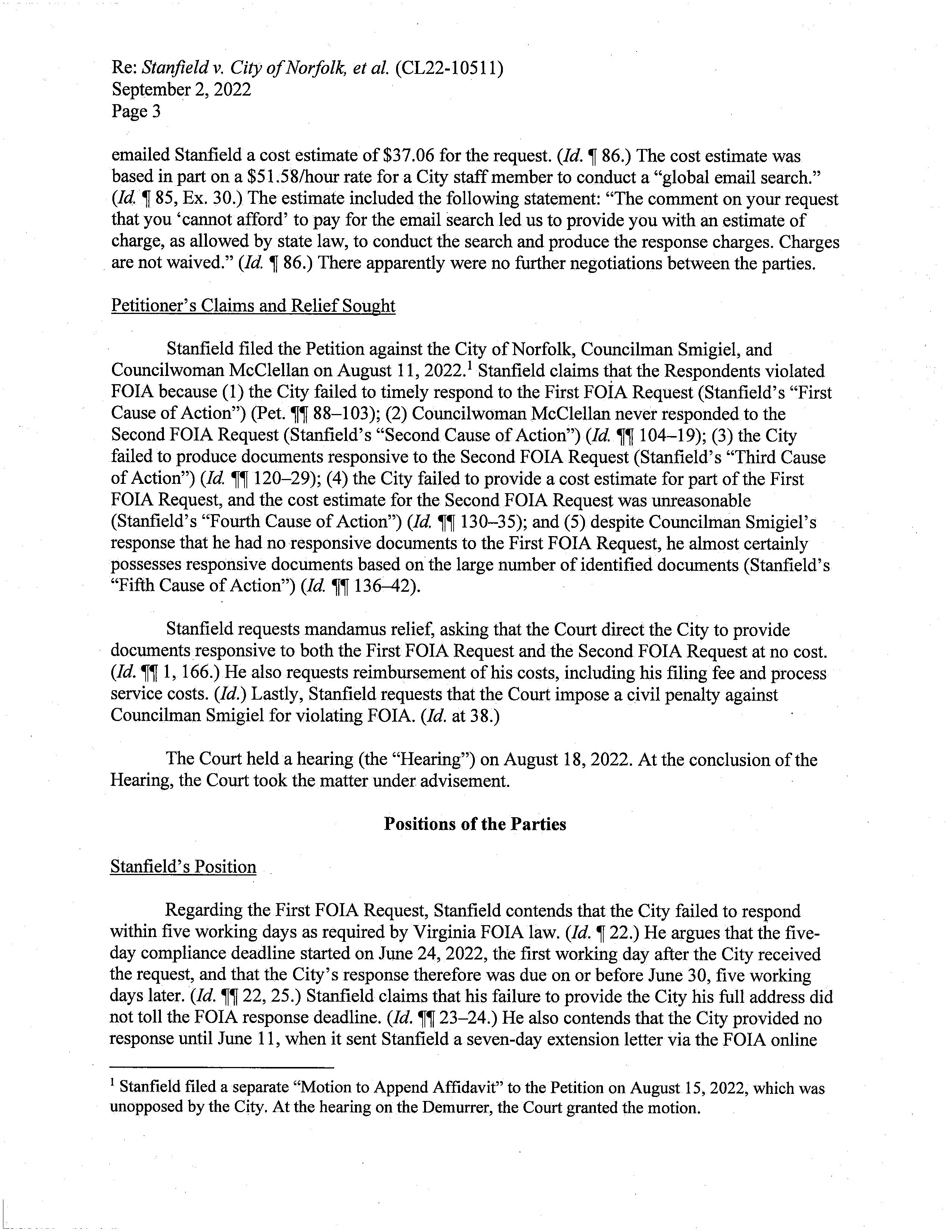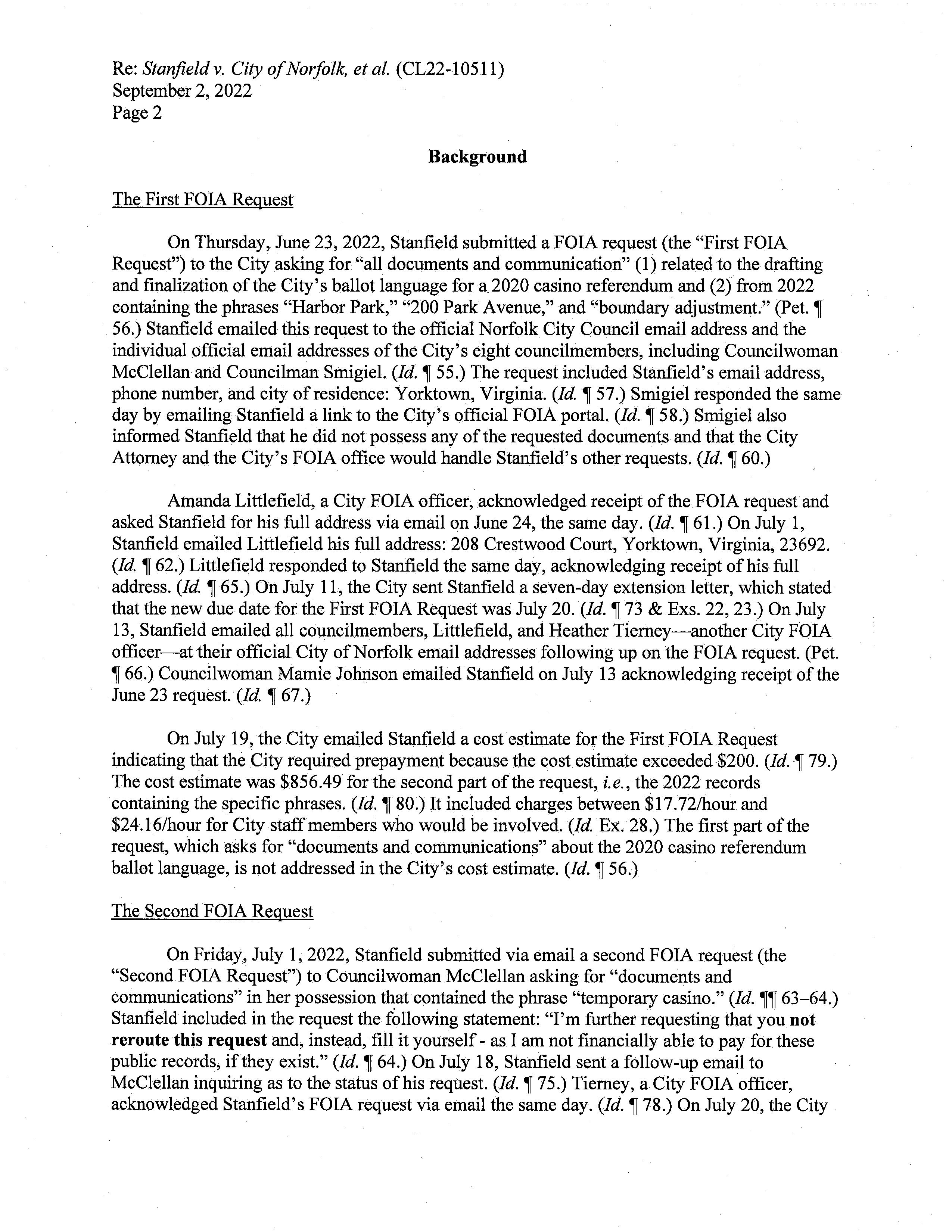 Joshua Stanfield v. City of Norfolk, et al. - CL22-10511 by Norfolk Circuit Court Clerk's Office - Issuu