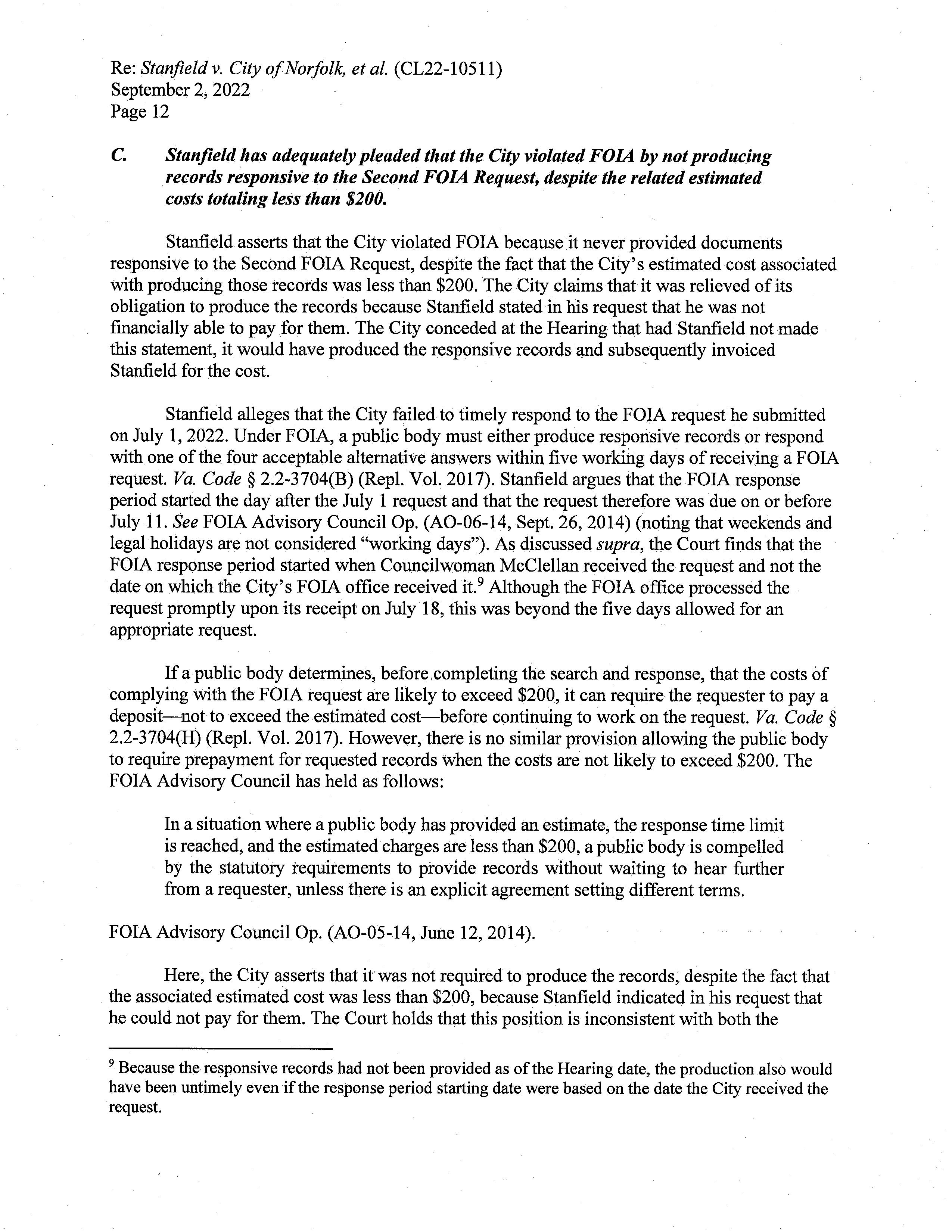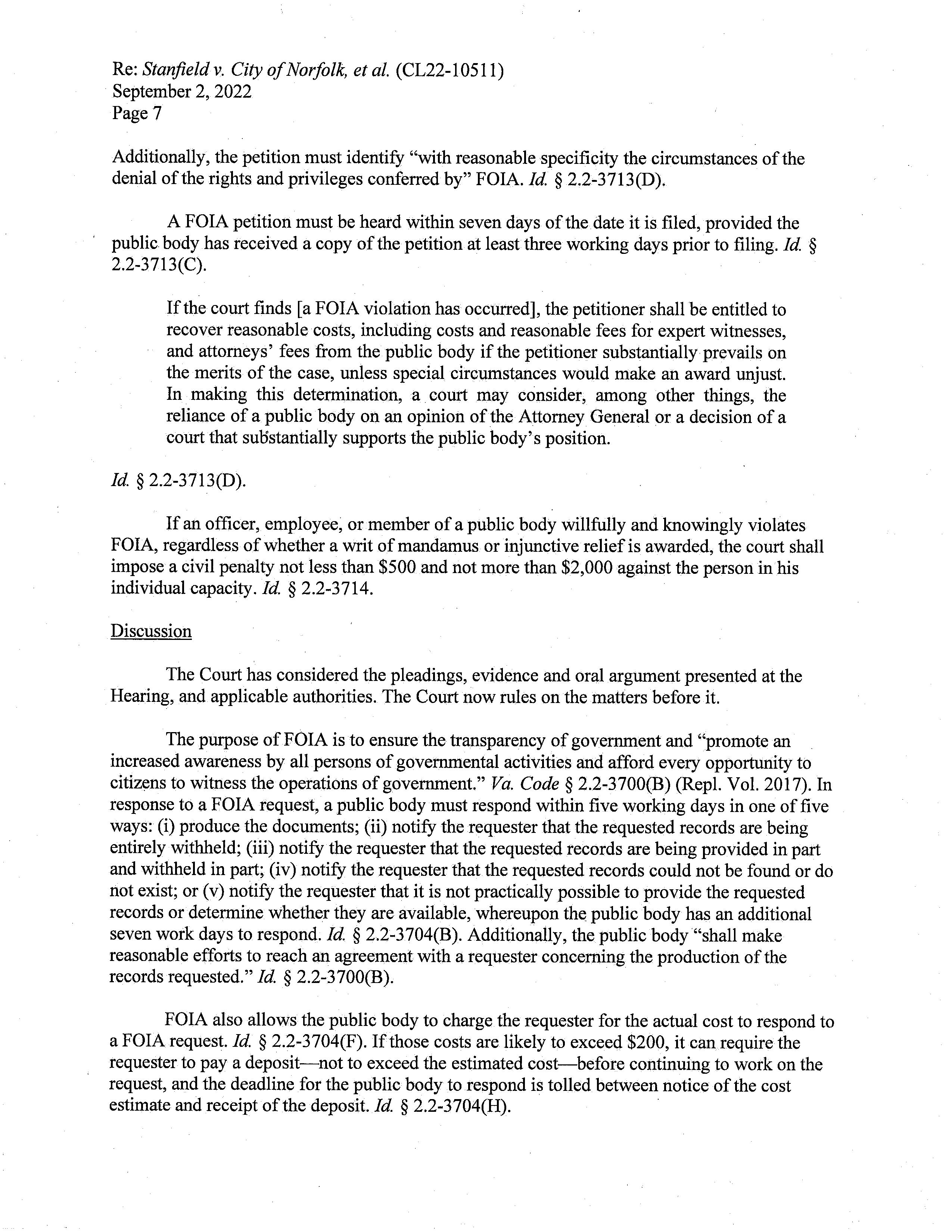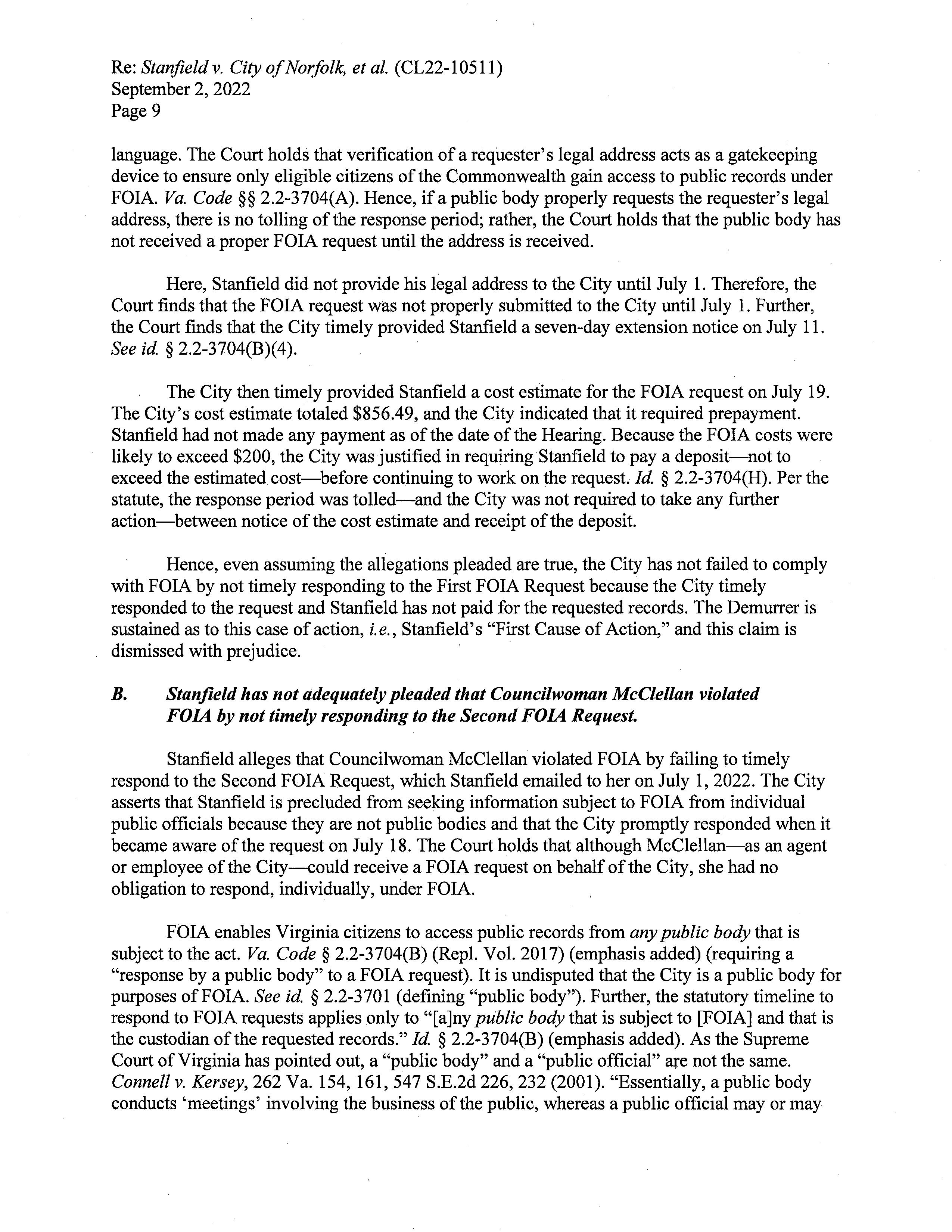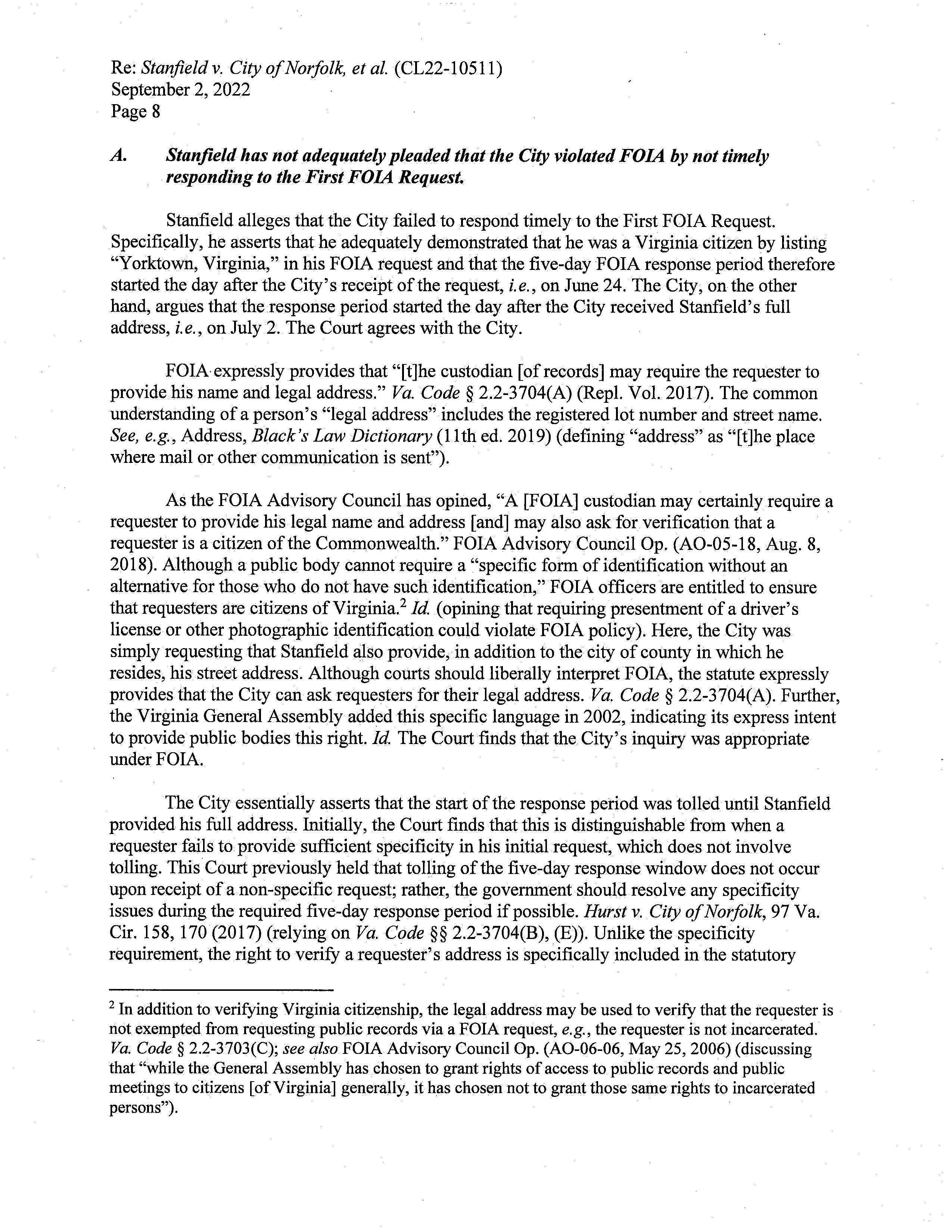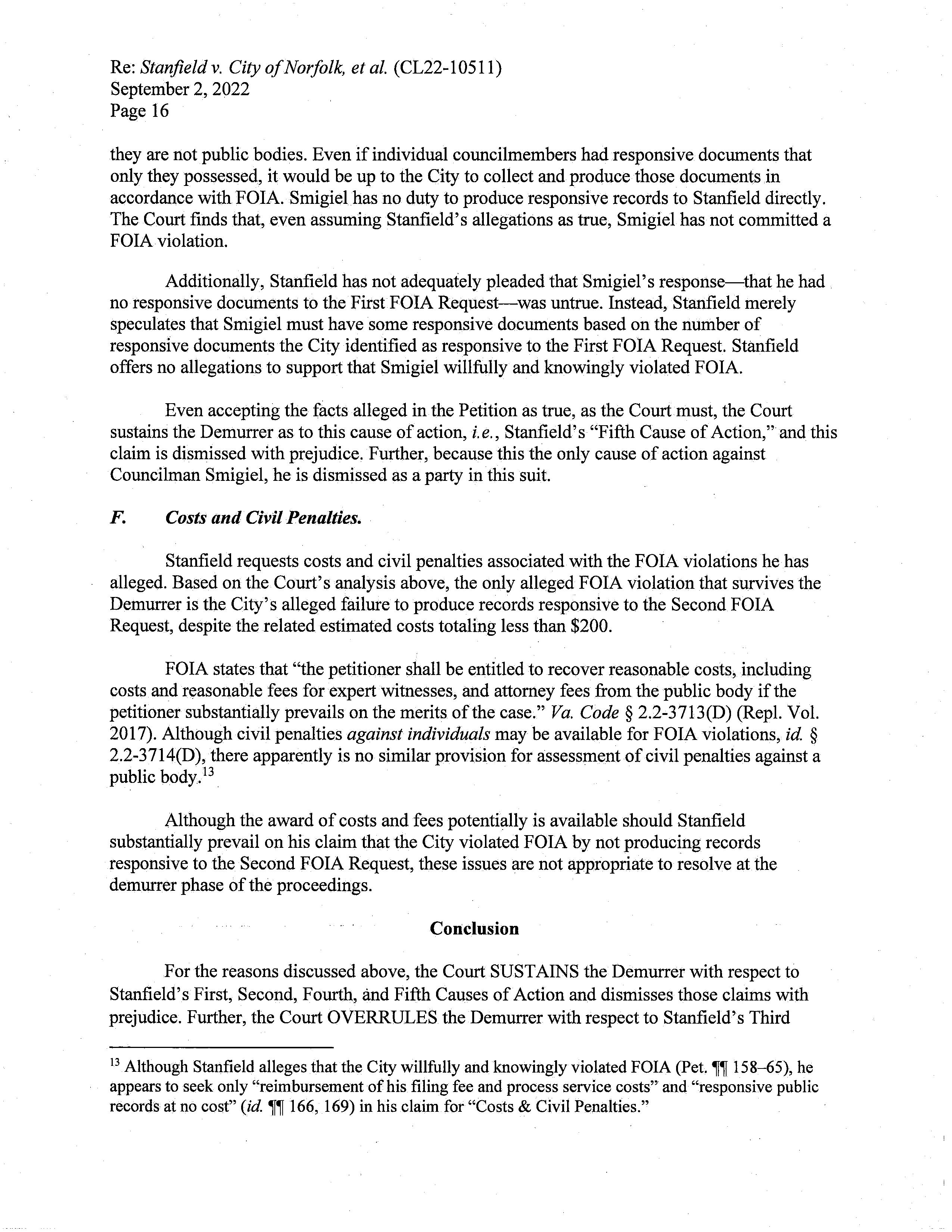 Joshua Stanfield v. City of Norfolk, et al. - CL22-10511 by Norfolk Circuit Court Clerk's Office - Issuu