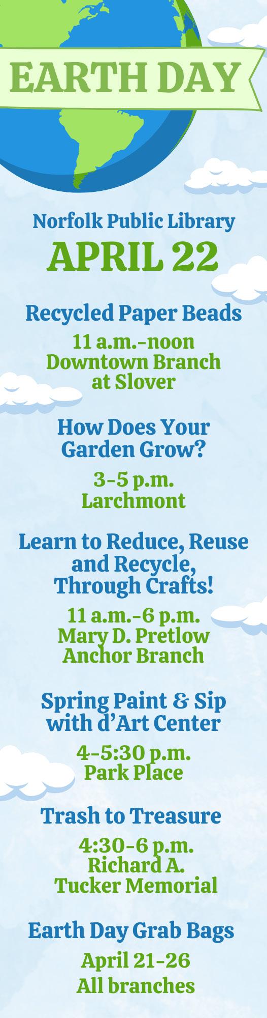 It’s with great pleasure that I get to share with you all that Norfolk Public Library’s resolution going into the new year is to continue creating a City of Learners! And one of the best ways to do that is to keep you all informed about the fun, free innovative programming you can find throughout this event guide and at a branch location near you.