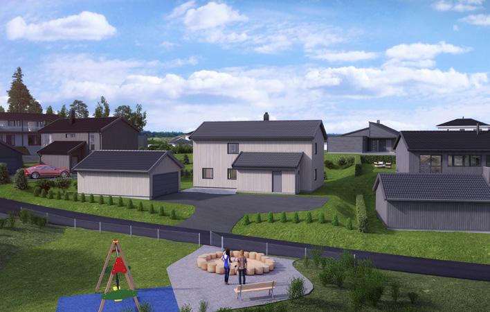 Skrå vestvendt tomt. Her er det mulighet for å bygge enebolig med inngang i sokkel. Sørvestvendt terrasse gir gode muligheter for sol på ettermiddagen. Med lekeplassen som nærmeste nabo er det bare å slippe løs ungene.