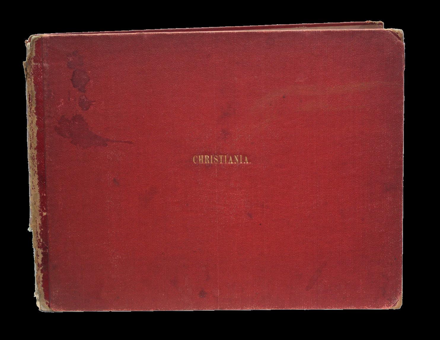 57 (TØNSBERG, Chr.): Christiania med dens nærmeste Omgivelser, fremstillet i Tegninger og ledsaget med kort oplysende Text. Christiania. 1854. Tverr-4to. 12 litograferte plansjer med tilhørende tekstblad. Samt. rødt helsjirtingbind. Ryggen er defekt, løs i bindet. Plansjene er usedvanlig rene og pene.(124141) 4.500,-