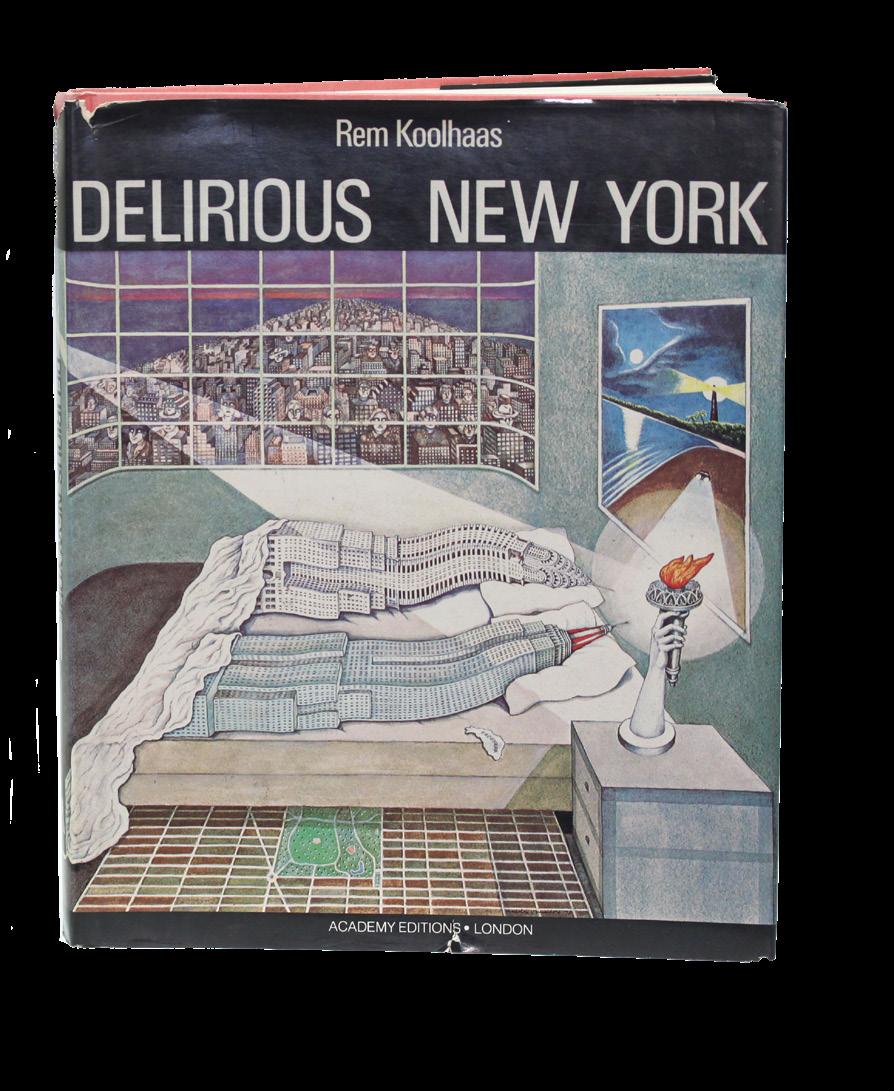116 KOOLHAAS, Rem: Delirious New York. A Retroactive Manifesto for Manhattan. London. 1978. Stor 8vo. 263 s. Rikt illus. i s/h og farger. Orig. bind med vareomsl. som viser Chryslerbygningen og Empire State building til sengs (Madelon Vriesendorp.). Litt buede permer, små rifter i omsl. (134497) 1.500,”Through the simultaneous explosion of human density and invasion of new technologies, Manhattan became, from 1850 on, a mythical laboratory for the invention and testing of a revolutionary lifestyle: the Culture of Congestion. “Delirious New York” is a polemical investigation of that Manhattan.” Britisk førsteutg. av dette ikoniske verket om byutvikling. Omslaget er identisk med den amerikanske førsteutgaven, foruten at det står ”Academy Editions”. Forlaget har klistret sin adresse over den originale amerikanske.