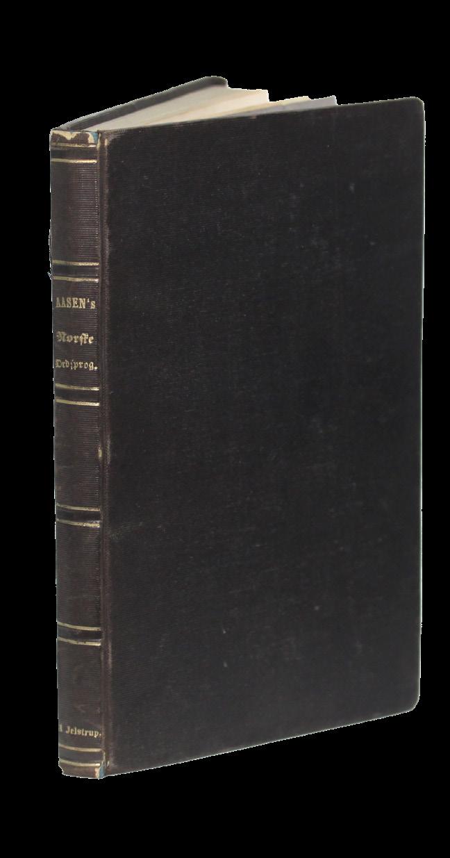 152 AASEN, I.: Norske Ordsprog, samlede og ordnede af ... Christiania. 1856. 8vo. XXIII, (1) s., 262, (1) s. Fraktur. Samt. sort helsjirtingbind med enkel gulldekor på ryggen. Et par slitasjehull på ryggen langs ytre falser og øverst og nederst på ryggen. Navn i gull nederst på ryggen. Navnestempel. Et bra eksemplar med fin materie.(134595) 1.800,Originalutgaven.