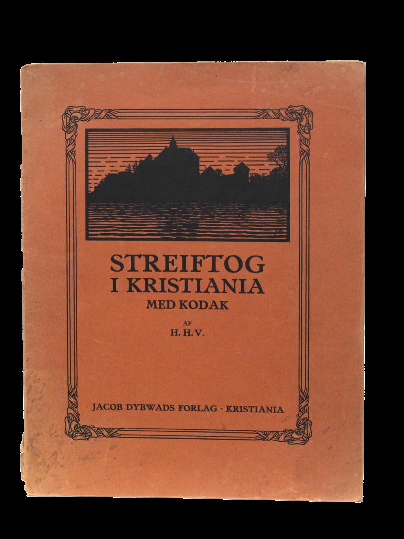 60 [VOGT, H. H.] Streiftog i Kristiania med Kodak. Af H. H. V. Kristiania. 1911. 4to. Fine Kristianiabilder. Orig. omsl. Kn. på et noe falmet bakomsl. Små fl. på foromsl., ellers pen.(36526) 450,Intet af Billederne er ældre end 1907 [og ikke nyere enn 1911].