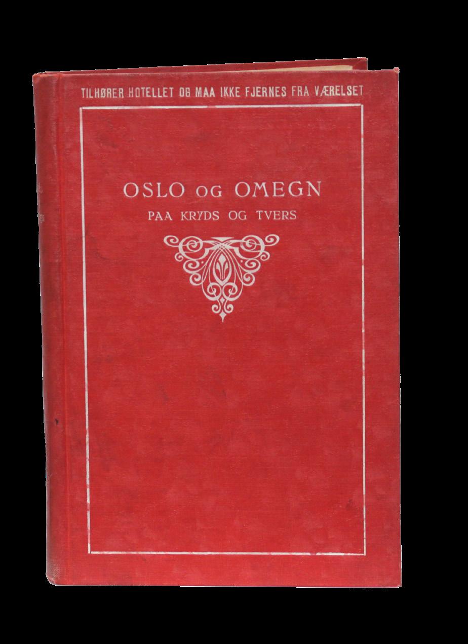 24 HILDITCH, E. W.: Oslo og Omegn paa kryds og tvers. Redigert av E. W. Hilditch. Oslo. 1926. 8vo. XVIII s., 235 s. Med 1 (av 2) foldede kart. Illustr. og med en del annonser. Orig. rødt helsjirtingbd. Friskt og fint eksemplar. Boken var nok utlagt på byens hoteller da det er trykt på forpermen: “Tilhører hotellet og maa ikke fjernes fra værelset”. Det foldede bykartet mangler.(134113) 500,-