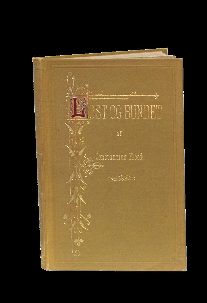 17 FLOOD, Constantius: Løst og bundet. Skisser og Studier. Første Tusinde. Kristiania. 1885. 8vo. (8), 179 s., (2) blad annonser. Orig. helsjirtbd. med dekor (Mallingbindet). Lite navnestempel på fribl.(132653) 500,Bl. a. lokalhistoriske skisser fra hovedstaden, “Fra Grønland” og “Fra Ankerbroen og Torvene”.