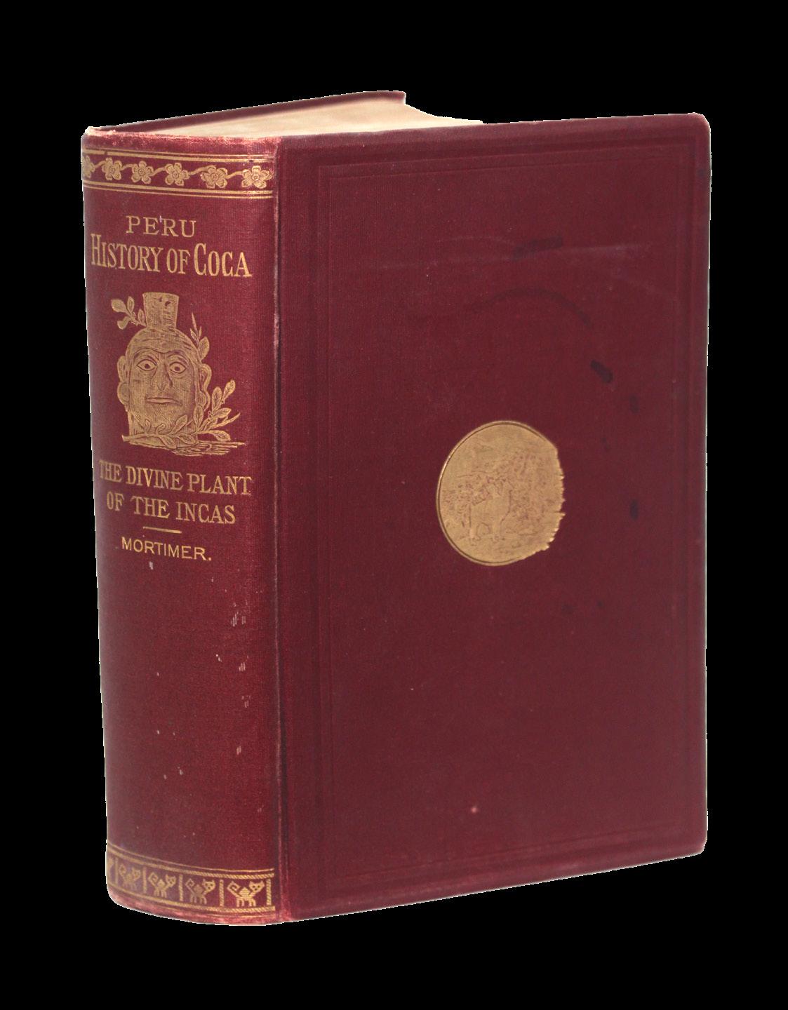 123 MORTIMER, W. Golden: Peru. History of Coca. “The Divine Plant” of the Incas. With an introductory account of the Incas, and of the Andean Indians of to-day. New York. 1901. Stor 8vo. xxxi, 576 s. Illus. i svart/hvitt. Frontispiece. Orig. helsj.bd. med forgylt dek. på rygg og forperm. Forgylt øvre snitt. Lett slitasje på kap. og hj. Navn på tittelblad. Pen. Ex libris.(135809) 3.000,Førsteutgave av den viktigste boken om kokaplantens historie og bruksområder. William Golden Mortimer (1854-1933) var en amerikansk lege og forfatter. Han er kjent for denne boken om plantens ulike egenskaper. Boken fortsetter å være aktuell ved at den endelig ble oversatt til spansk i 2019. Den var da en del av arbeidet til den peruvianske avkriminaliserings-aktivisten Baldomero Cáceres Santa María.