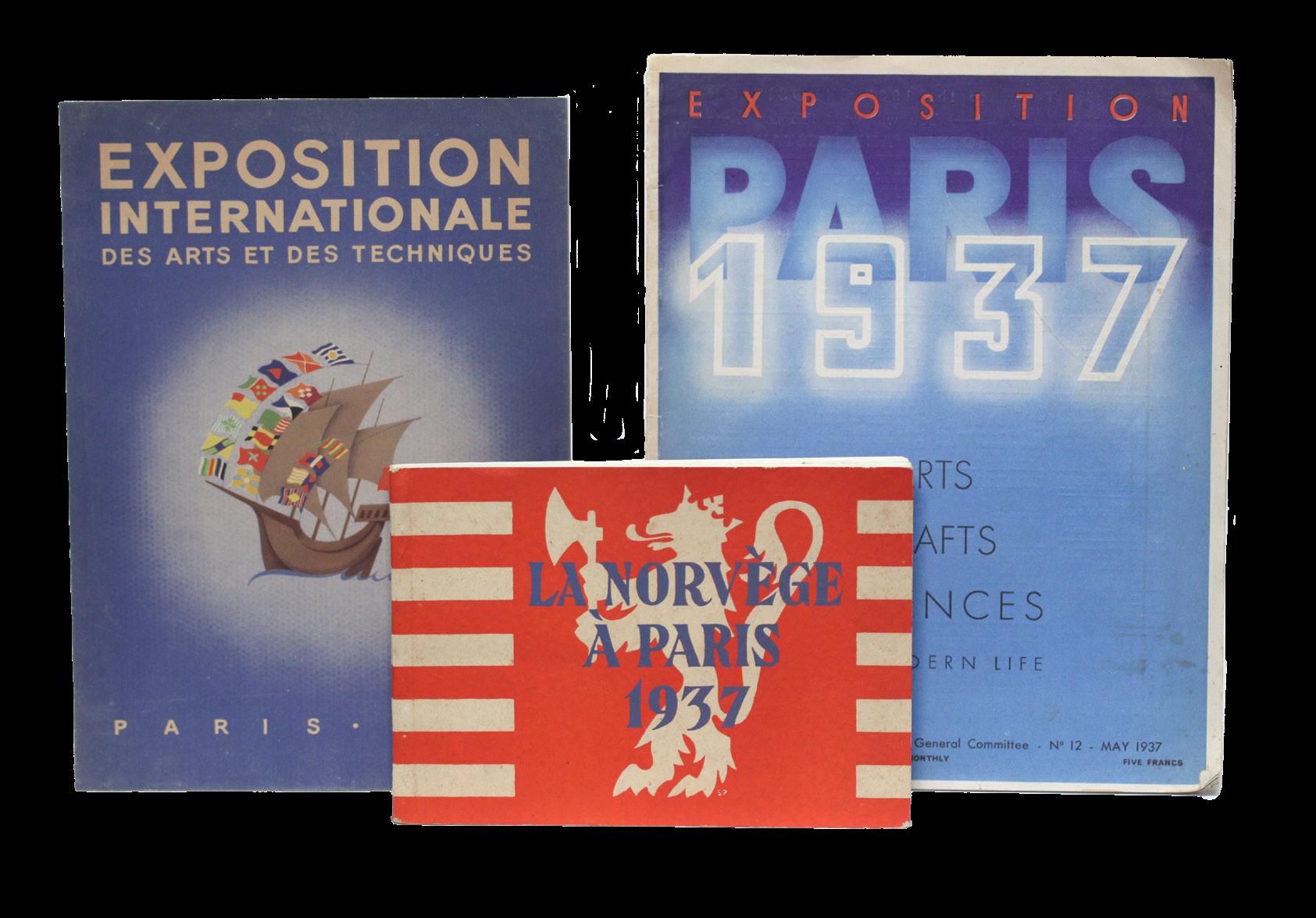 131 (PARIS 1937) Catalogue du Pavillion de La Norvège à L’Exposition Internationale de Paris 1937. Oslo. (1937). Tverr-8vo. 152 s., (10) s., XIII s. Illustrasjoner. Orig. omslag i rødt, hvitt og blått.(133997) 500,-