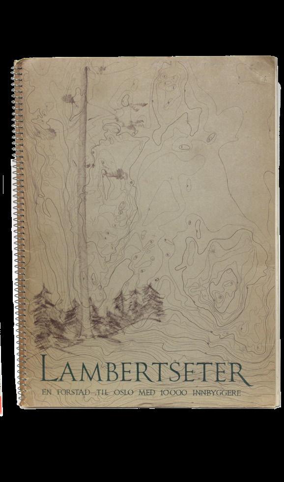 36 (LAMBERTSETER) Lambertseter. En forstad til Oslo med 10 000 innbyggere. Stensilert A-4. 48 s. Illustrasjoner. Med 1 foldet kart. Spiralrygg.(135740) 500,Planen er utført som gruppearbeider under ledelse av Frode Rinnan. Forstudie til Norges første drabantby, Lambertseter. Andre medvirkende arkitekter var Ivar Bull Bauck, Magnar O. Bremseth, Kjell Colbiørnsen, Tor Skjånes, Olav Tveten. Forord av reguleringssjef Erik Rolfsen.
