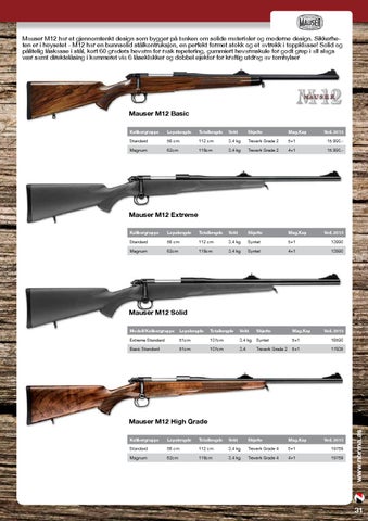 Mauser M12 har et gjennomtenkt design som bygger på tanken om solide materialer og moderne design. Sikkerheten er i høysetet - M12 har en bunnsolid stålkontruksjon, en perfekt formet stokk og et avtrekk i toppklasse! Solid og pålitelig låskasse i stål, kort 60 graders hevarm for rask repetering, gummiert hevarmskule for godt grep i all slags vær samt direktelåsing i kammeret via 6 låseklakker og dobbel ejektor for kraftig utdrag av tomhylser